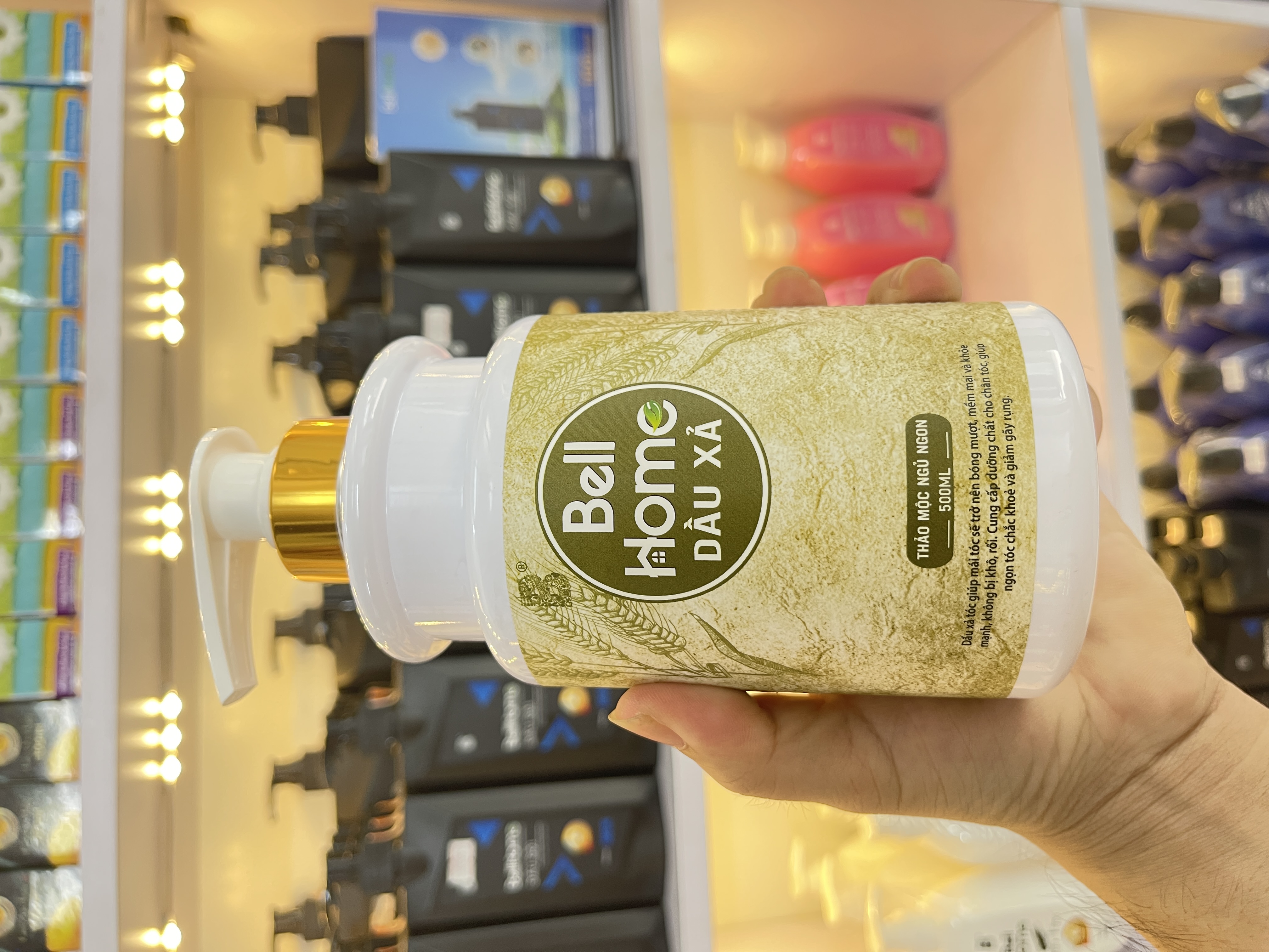 - ĐẶC ĐIỂM NỔI BẬT CỦA DẦU XẢ CÔNG NGHỆ SINH HỌC BELL HOME THẢO DƯỢC NGỦ NGON 500ML Sự kết hợp giữa các thành phần kể trên đã tạo ra sản phẩm tuyệt vời trong đó phải kể đến những công dụng như Công nghệ chuyển giao từ Đức kết hợp với công thức chăm sóc sâu từ Nhật Bản Từ liệu pháp hương thơm cho đến cơ chế tác động vào não bộ, nhịp tim, nhịp thở… Tất cả đã được nghiên cứu, phát triển trong các công trình khoa học được chuyển giao từ Bell Flavors & Fragrances tại Đức, có 200 năm lịch sử, cùng công thức chăm sóc da và tóc chuyên sâu của Nhật, để cho ra đời bộ sản phẩm dầu xả ngủ ngon Bell Home. Tác động đến hệ thần kinh, tần sóng não Alpha, Beta trong não bộ Với 3 loại hoạt chất và tinh dầu cho vào Dầu xả Bell Home tạo nên cơ chế tắm gội xong, sẽ ảnh hưởng trực tiếp đến hệ thần kinh, đến sóng não Alpha, Beta trong não bộ của chúng ta, mang đến những tác động tích cực cải thiện giấc ngủ, giảm thiểu tình trạng lo âu, đau nhức đầu và mệt mỏi. Ngăn chặn sự tăng trưởng của tế bào sừng Không chỉ khác biệt bởi liệu pháp hương thơm tác động tích cực cải thiện giấc ngủ, Dầu xả ngủ ngon Bell Home còn có tác dụng vượt trội trong việc ngăn chặn sự tăng sinh của tế bào sừng, đặc trị gàu, ngứa, đồng thời cải thiện các tình trạng viêm da tiết bã, á sừng, vẩy nến một cách tối ưu nhất. Dưỡng chất thảo dược cho giấc ngủ tròn đầy Kết hợp giữa thành phần dưỡng tóc tự nhiên cổ truyền như bưởi, bồ kết, trà xanh, nha đam, gừng, hà thủ ô... và tinh dầu ngủ ngon tạo cảm giác thư giãn sau mỗi lần gội. Áp dụng công nghệ Nano vàng, Nano bạc tiên tiến Dầu xả công nghệ sinh học Bell Home thảo dược ngủ ngon áp dụng công nghệ Nano vàng, Nano bạc tiên tiến thúc đẩy tế bào mới tái tạo nhanh hơn, giúp da đầu, da tóc khỏe mạnh hơn Công thức dầu gội an toàn, lành tính Sản phẩm được chiết xuất từ thiên nhiên rất an toàn và lành tính, giá trị pH phù hợp với da đầu người châu Á hỗ trợ loại bỏ các tạp chất tích tụ để làm sạch sâu cho tóc, đánh bay gàu ngứa, mồ hôi, vi khuẩn trên da đầu. Hỗ trợ sạch gàu, ngứa dai dẳng Sản phẩm hỗ trợ cung cấp đủ độ ẩm, cân bằng dầu trên da đầu, khóa ẩm giúp tóc không bị khô xơ và ngăn ngừa tình trạng tiết bã nhờn, giảm tình trạng tóc chẻ ngọn. Sản phẩm dành cho mọi nhà Được chiết xuất từ những tinh hoa, tinh túy từ thiên nhiên, “lành và sạch”, bộ sản phẩm dầu gội xã, sữa tắm ngủ ngon nhà Bell Home đã khẳng định chất lượng và sự tin yêu của rất nhiều khách hàng.