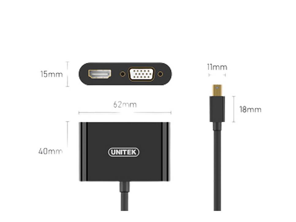 Cáp chuyển đổi Mini DisplayPort, Thunderbolt sang VGA + HDMI Unitek Y-6328BK Chính hãng