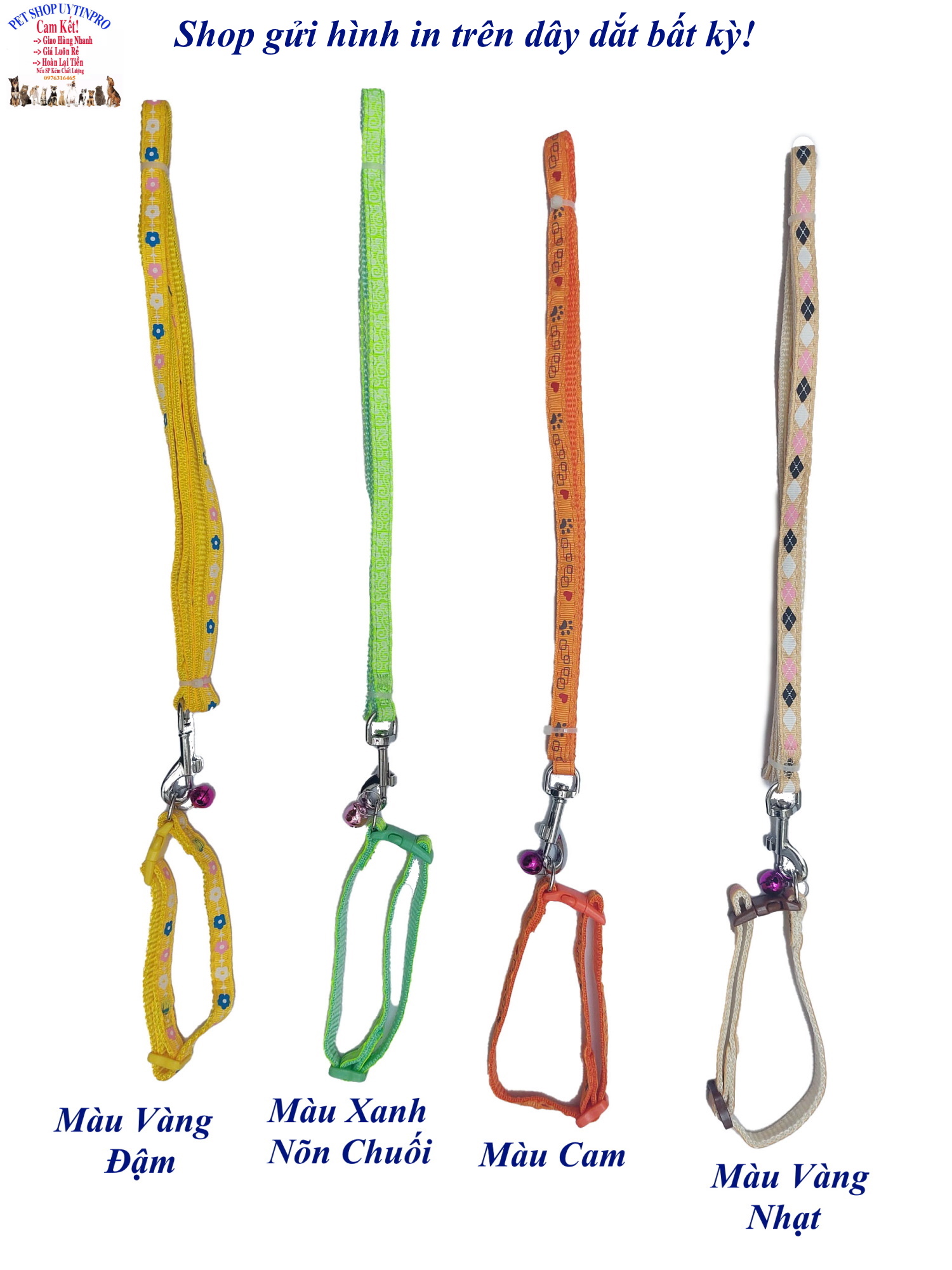 [GIỚI THIÊU] Dây dắt nhiều họa tiết cho chó mèo Size: Sản phẩm có 3 size: Size S: Dây rất nhỏ phù hợp thú 1-2kg Size M: Dây vừa phù hợp thú 3-4kg Size L: