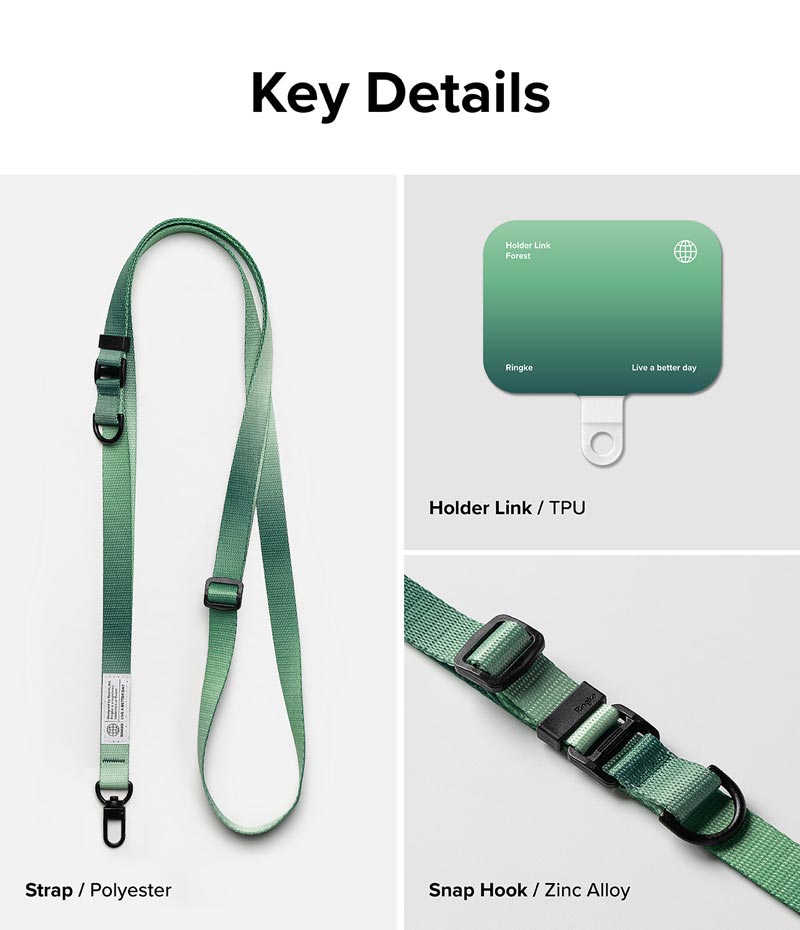 - Dây đeo Ringke Holder Link & Snap Hook Lanyard Strap là sự kết hợp độc đáo giữa hai dòng dây đeo bán chạy của Ringke: Holder Link Strap và Basic Lanyard Strap, có thể sử dụng được cho các dòng điện thoại khác nhau.