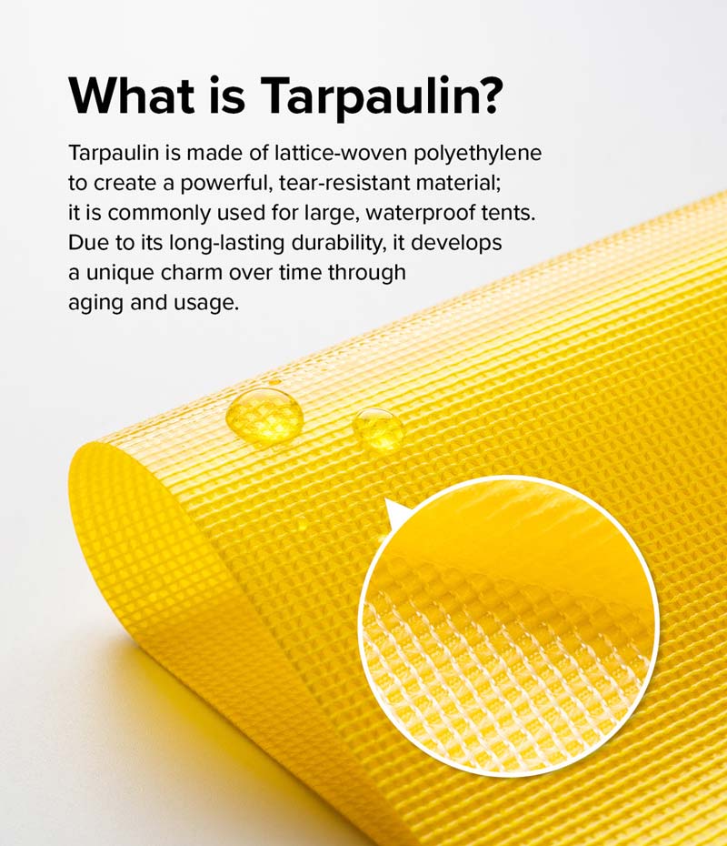 - Sản phẩm chỉ là dây đeo, KHÔNG BAO GỒM ốp lưng (hình ảnh ốp lưng chỉ minh hoạ giúp hiểu thêm cách sử dụng sản phẩm) TARPAULIN LÀ CHẤT LIỆU GÌ? Tarpaulin được làm bằng chất liệu polyetylen dệt dạng lưới để tạo ra một loại vật liệu mạnh mẽ, chống rách, thường được sử dụng cho các sản phẩm lều kích thước lớn, không thấm nước. Thông số kỹ thuật