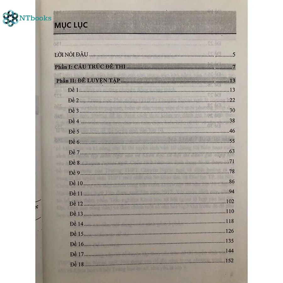 Phần hai : Đề luyện tập : Cung cấp 30 đề luyện tập theo cấu trúc đề thi tuyển sinh vào lớp 10 THPT Chuyên ngoại ngữ. Nội dung đề thi nằm trong chương trình Ngữ văn và Khoa học xã hội Trung học cơ sở, chủ yếu là lớp 9.