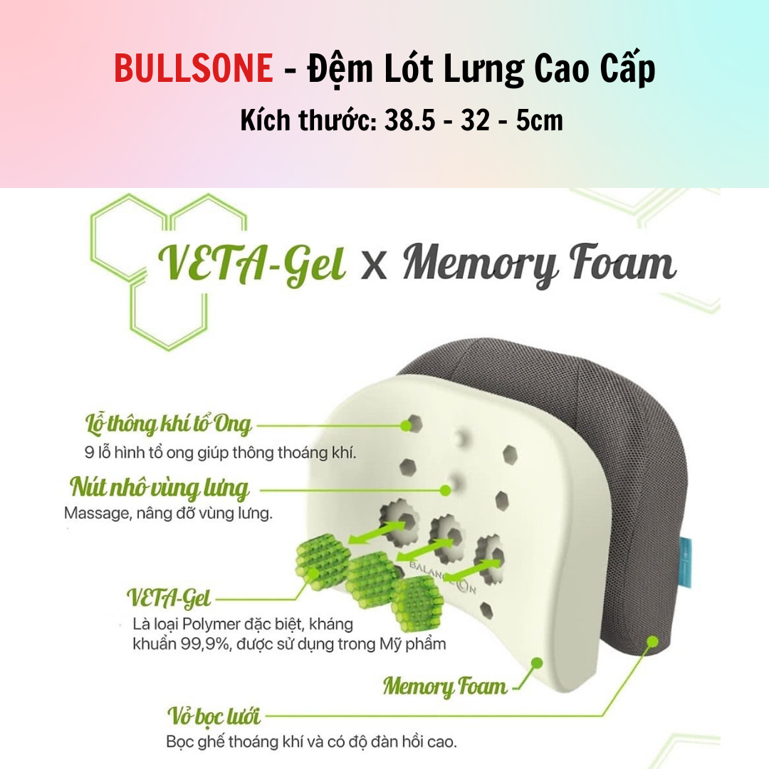 ✨Đệm Lưng Cao Cấp Bullsone - Xám - Hàng chính hãng