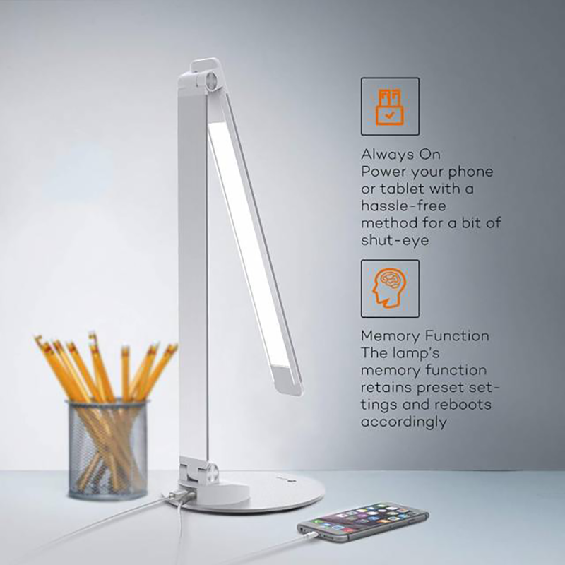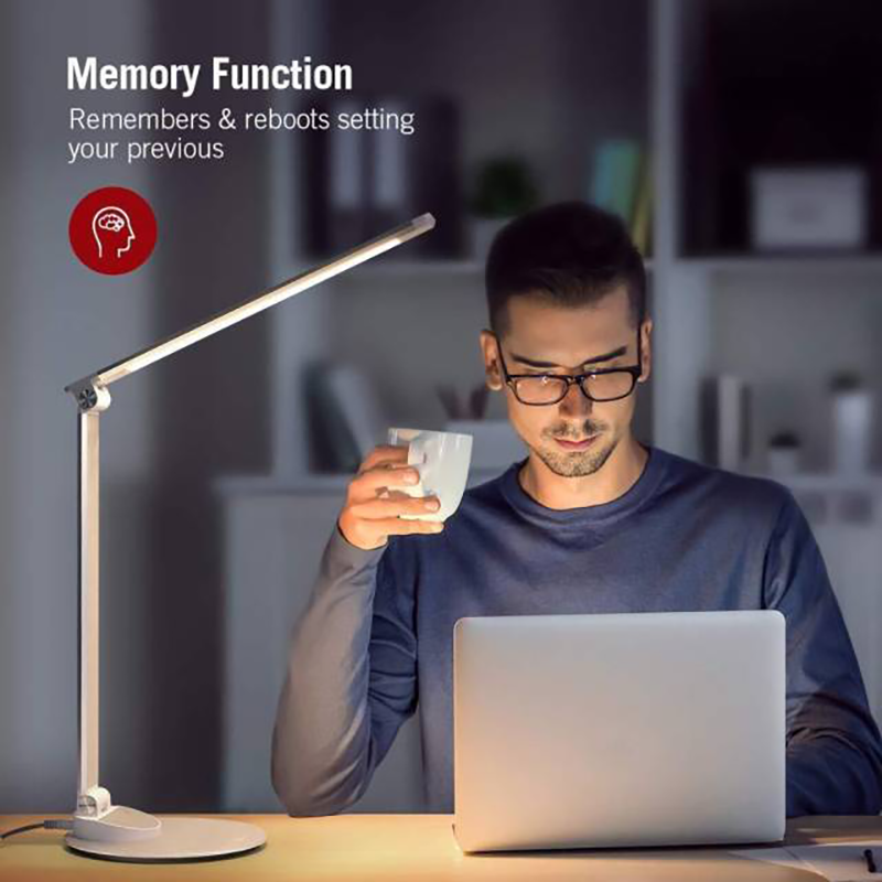 Đèn LED Chống Cận Taotronics 10W TT-DL19 - Màu Bạc Đèn học được thiết kế cực kỳ chắc chắn với nhựa bền và hợp kim nhôm siêu mỏng tạo nên một phong cách hiện đại, lịch lãm, không nút bấm. TT-DL19 không chỉ là một đèn bàn mà còn là một vật trang trí khiến chiếc bàn làm việc, bàn ngủ đầu giường thêm sang trọng. Phần đầu và cánh tay của đèn có thể xoay dễ dàng lên đến 135° hoặc xoay đế 135° đảm bảo bạn luôn có được góc đọc hay làm việc hoàn hảo nhất dù ở bất cứ vị trí ngồi nào. Đèn học chống cận Taotronics TT-DL19 cho phép bạn lựa chọn giữa 25 mô hình ánh sáng. Có 5 mức màu là 3000K, 3500K, 4000K, 5000K và 6000K để lựa chọn và mỗi màu có 5 mức điều chỉnh mức sáng khác nhau cho phù hợp với từng hoạt động của bạn. Đặc biệt, chọn một trong 25 kết hợp CCT và độ sáng có thể có và quay lại ngay lập tức ngay sau khi bạn bật công tắc. Chức năng bộ nhớ của đèn vẫn giữ lại các cài đặt định sẵn và khởi động lại cho phù hợp với nhu cầu của bạn. Đèn chống cận Taotronics TT-DL19 sử dụng bóng đèn LED tiết kiệm năng lượng phản chiếu ánh sáng ngang để giảm thiểu việc chói và mỏi mắt. Ánh sáng dịu, không bị nhấp nháy tạo cảm giác dễ chịu cho mắt, gây ít mệt mỏi hơn khi đọc sách, học tập hay làm việc. Đèn LED cho mức sáng hơn: Chiếu sáng bề mặt lên tới 1100LUX từ độ cao 40 cm để bạn có thể tận hưởng việc đọc hoặc tập trung vào nghiên cứu của m.ình mà không bị lác mắt. Tuổi thọ của đèn lên đến 50.000 giờ, nếu sửa dụng 7-8 giờ trên một ngày sẽ dùng được 17 năm. Đèn không tỏa nhiệt, thân thiện với môi trường và dùng cực thích vào mùa hè mà không lo ảnh hưởng bởi các tia bức xạ. Hơn nữa, bóng đèn LED này cũng sẽ giúp bạn tiết kiệm 75% lượng năng lượng tiêu thụ so với các đèn bàn khác cùng cường độ ánh sáng. Đèn bàn sử dụng bảng điều khiển cảm ứng. Tích hợp cổng sạc USB Ismart USB giúp bạn sạc các thiết bị điện thoại, máy tính bảng dễ dàng. Với bộ hẹn giờ tự động trong 1 giờ và chức năng đèn ngủ nhẹ nhàng, đủ nhẹ để cho phép một giấc ngủ yên bình, không bị quấy rầy cho bạn.