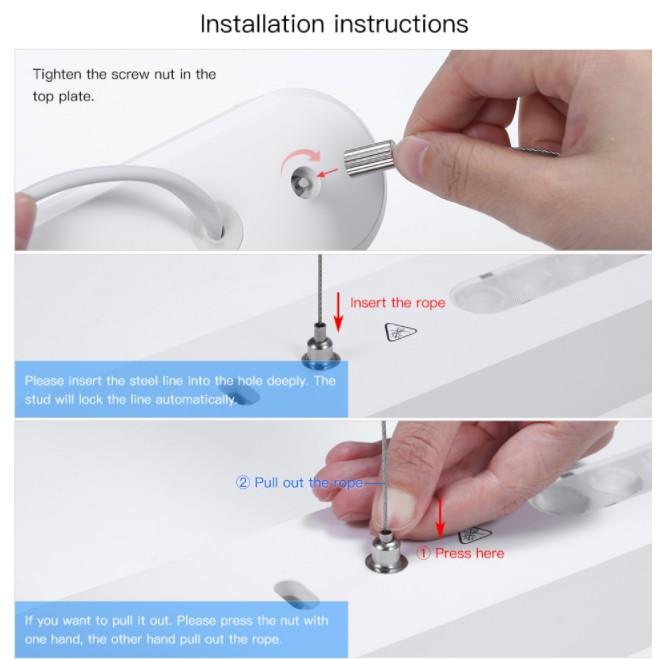 - Kích thước: thân đèn: 900 x 70 x 40mm; khay hút: 484 x 54 x 20,5mm; chỉ treo: 1.5m