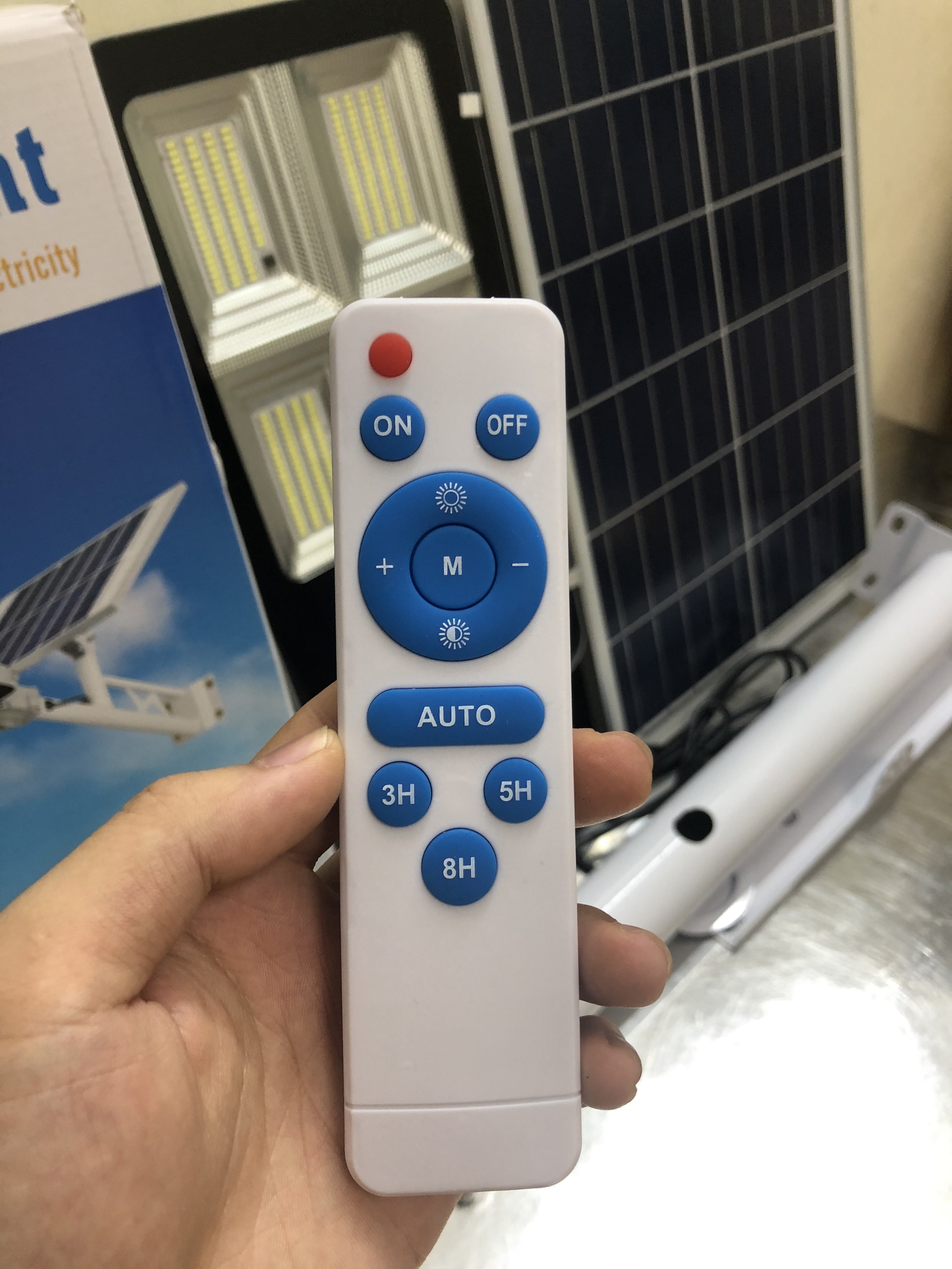 KHÔNG TỐN TIỀN ĐIỆN -> ĐÈN LED NĂNG LƯỢNG 100W Không sử dụng điện lưới do dùng năng lượng mặt trời. Có tặng kèm remote, chỉnh nhiều chế độ Tự động hoạt động: Ban ngày