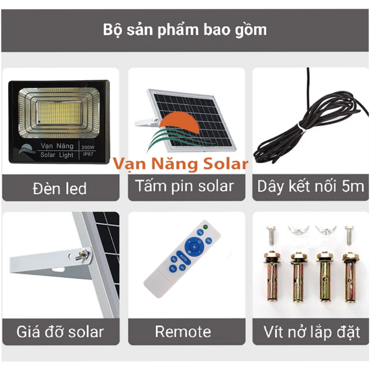 Ví dụ, đèn pha 60w kích thước đèn bao nhiêu ? số lượng led bao nhiêu hạt ? và tấm pin solar đi kèm là kích thước bào nhiêu ?