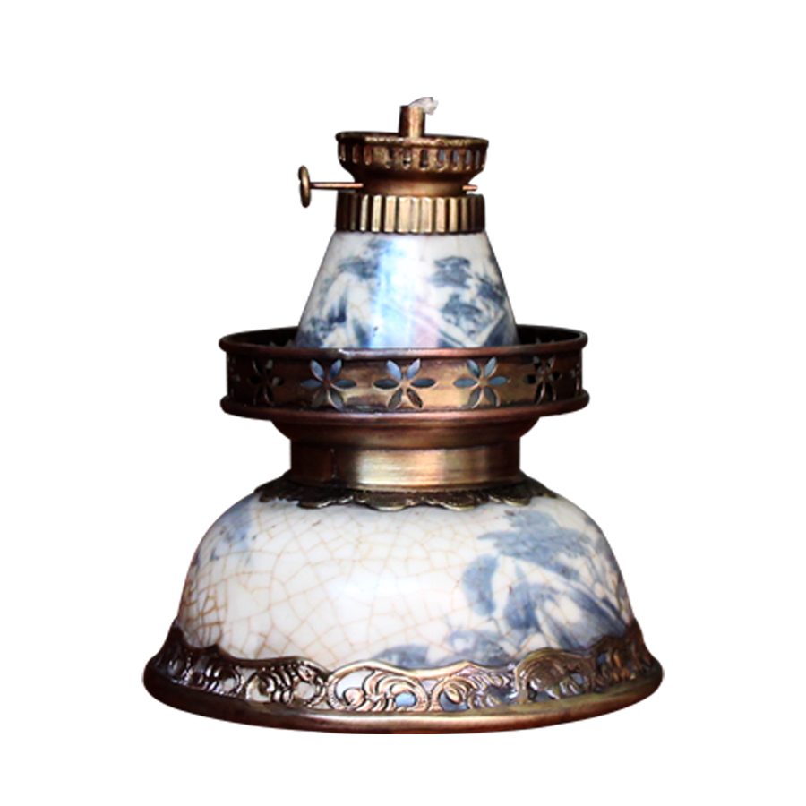 Sản phẩm: Đèn dầu men rạn vẽ chữ nho chân đồng đế bẹt chính hãng Bát Tràng Chất liệu: gốm sứ cao cấp Bát Tràng Họa tiết: Vẽ thủ công bằng tay, nghệ thuật tinh