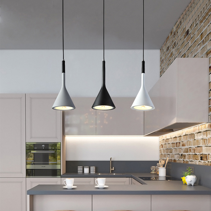 Ray đèn bằng kim loại sơn tĩnh điện, choá đèn bằng nhôm hình phễu có tác dụng hội tụ ánh sáng cao ,thường được sử dụng vào vị trí bàn ăn,