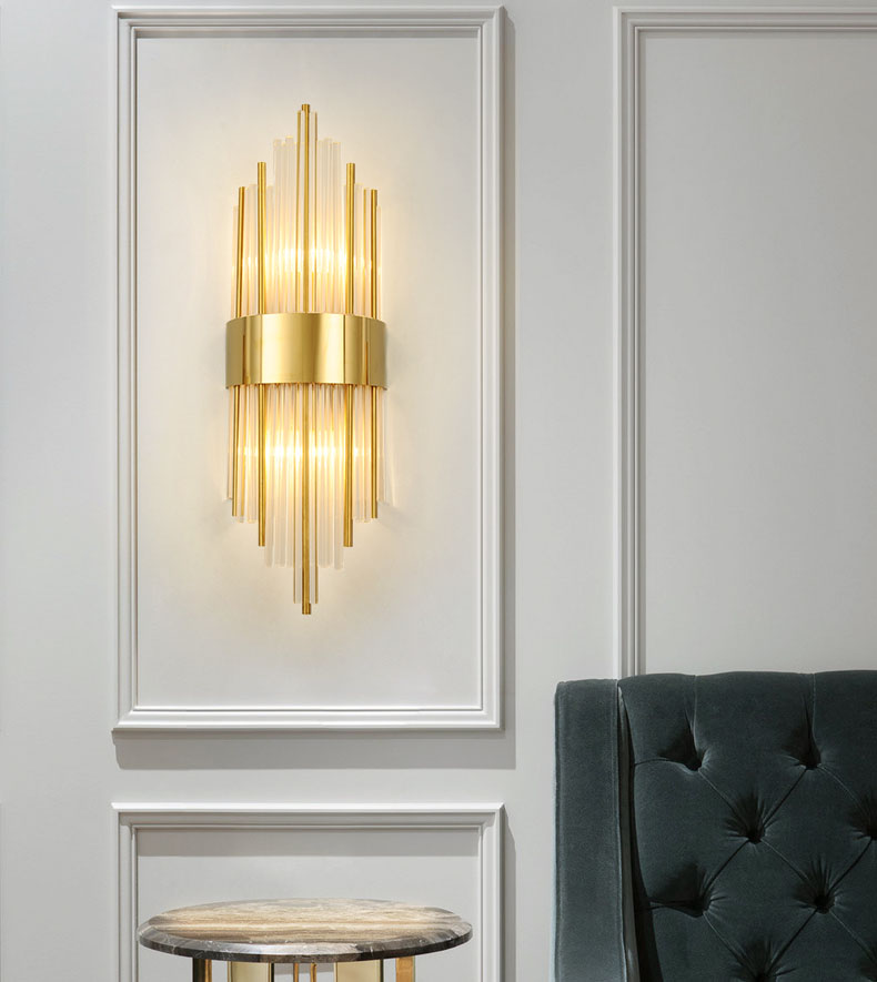 Đèn tường pha lê là loại đèn được thiết kế rất tinh xảo với sự kết nối hài hoà giữa các thanh pha lê với nhau và sự phản chiếu ánh sáng của đèn led