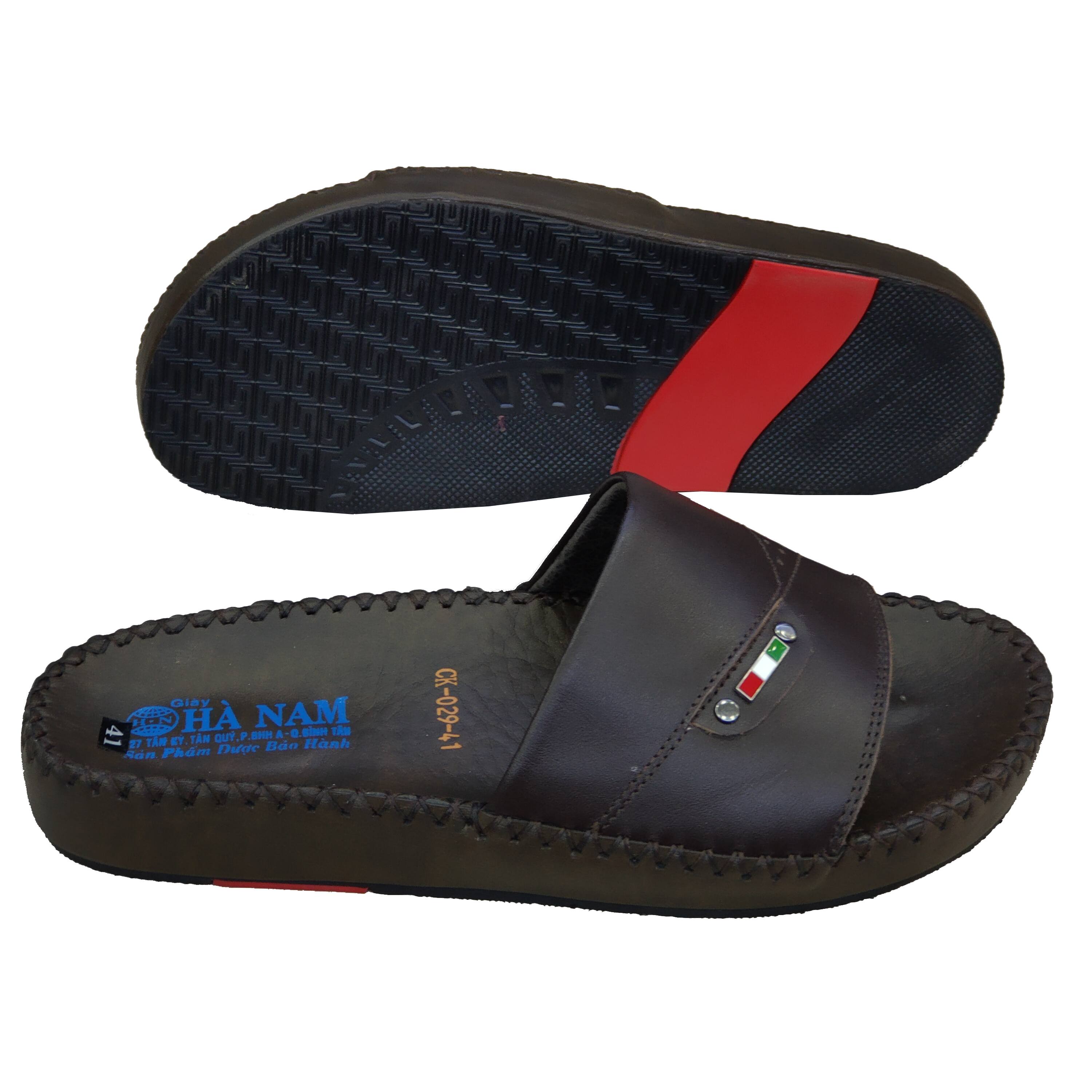 Dép lê chữ H, dép quai ngang da thật cỡ lớn 45 46 47 48 cho nam chân to. Big size leather slippers.