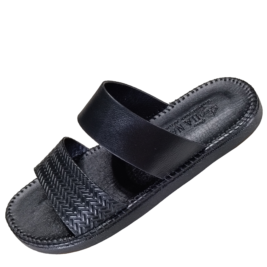Dép Da Nam - Lịch Lãm & Thoải Mái Mỗi Ngày - Chất liệu cao cấp: Sử dụng da tổng hợp chất lượng, mềm mại, bền bỉ theo thời gian, mang lại cảm giác êm ái và thoáng khí cho bàn chân. - Thiết kế sang trọng: Tông màu đen lịch lãm, kết hợp với đường chỉ may tinh tế và logo kim loại nổi bật – tôn lên vẻ nam tính, trưởng thành. - Đế chống trượt: Đế EVA siêu nhẹ, độ đàn hồi tốt, kết hợp vân đế tăng độ ma sát – an toàn khi di chuyển trên nhiều bề mặt. - Form ôm chân: Thiết kế bản quai ngang rộng, ôm gọn bàn chân nhưng không gây bí bách, dễ xỏ vào – thích hợp cho người trung niên và người lớn tuổi. - Ứng dụng đa năng: Phù hợp sử dụng trong nhà, đi dạo phố, đến văn phòng hoặc các dịp gặp gỡ thân mật. Lựa chọn tuyệt vời cho quý ông yêu thích sự thoải mái, đơn giản nhưng vẫn giữ được nét tinh tế trong từng bước chân.