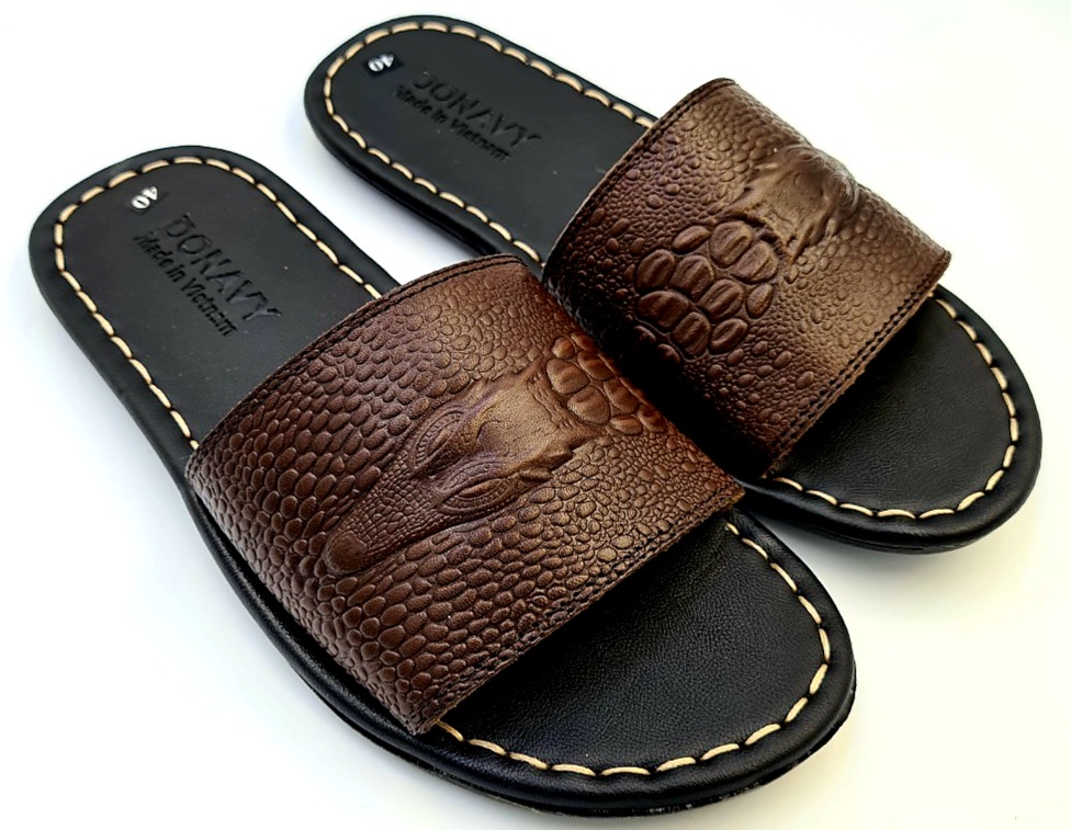 Mua tại TiktokDép Quai Ngang Nam Da Bò Thật 100%,DONAVY Kiểu Đầu Cá Sấu Đi Rất Nhẹ Và Êm DCSDN Chất liệu: Da bò thật 100% da bò tự nhiên Đế cao su tốt đi siêu êm, chống chơn, trượt. Da được may vào đế cẩn thận, đẹp bao đi nước Hàng đảm bảo giống hình