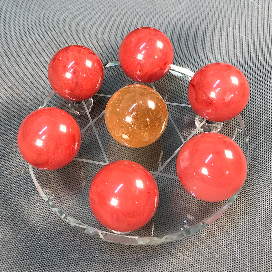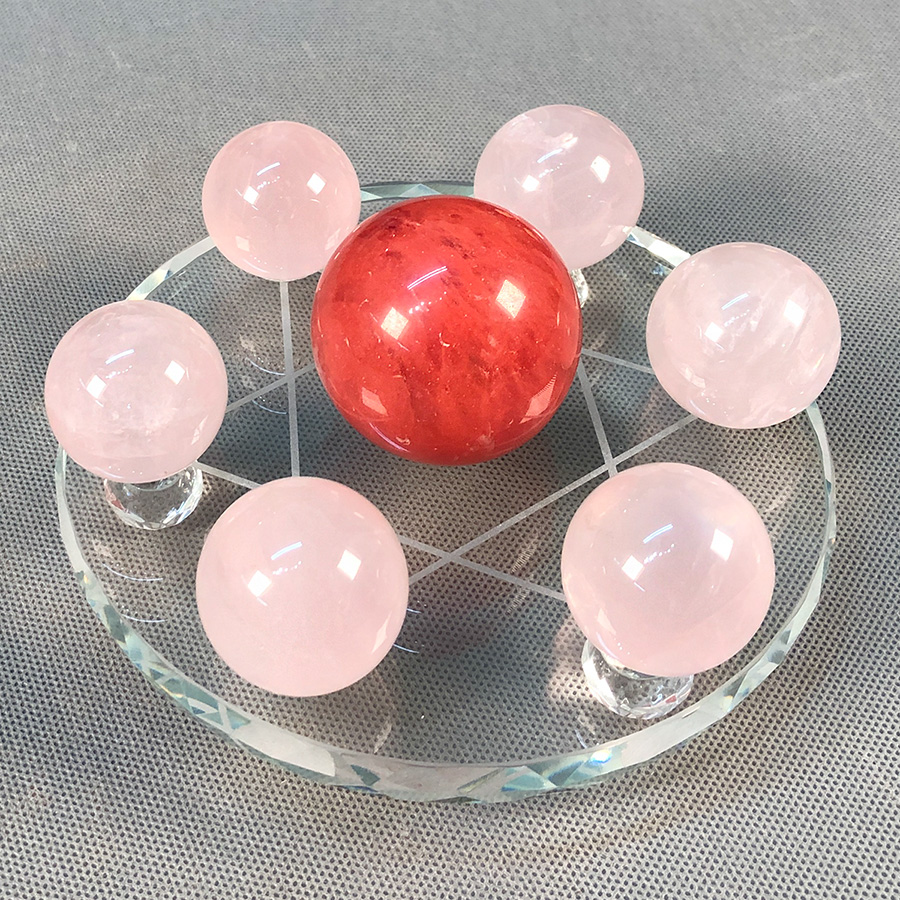 Đĩa cầu thất tinh là bộ gồm 7 viên cầu nhỏ đặt trên một đĩa tròn, nhằm tăng cường vượng khí của sao Bát Bạch, mang lại cát khí rất lớn, xua được tà khí, tạo quan hệ thuận hòa, được nhiều quý nhân giúp đỡ, thăng tiến công danh tài lộc và may mắn. Mỗi viên đá tượng trưng cho 1 tinh tú, 6 viên đá xung quanh bổ trợ năng lượng và bảo vệ cho viên đá chủ ở giữa. Thông thường viên đá chủ ở giữa sẽ có màu sắc tương sinh hoặc tương hợp với mệnh của chủ nhân. Những viên còn lại có thể đồng màu hoặc chọn theo màu của ngũ hành. Chú ý: Sản phẩm là đá tự nhiên, tạc từ tảng đá nguyên khối nên mỗi sản phẩm là duy nhất, các vân đá, màu sắc, hoa văn trên sản phẩm đều là tự nhiên và khác nhau, không quả nào giống quả nào. Khác với các sản phẩm nhân tạo như pha lê hay bột đá ép, các sản phẩm sản xuất hàng loạt có màu sắc và hình dạng giống nhau.