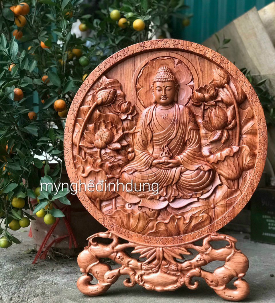 ✨Đĩa khắc phật adi đà bằng gỗ hương đá kt 30cm