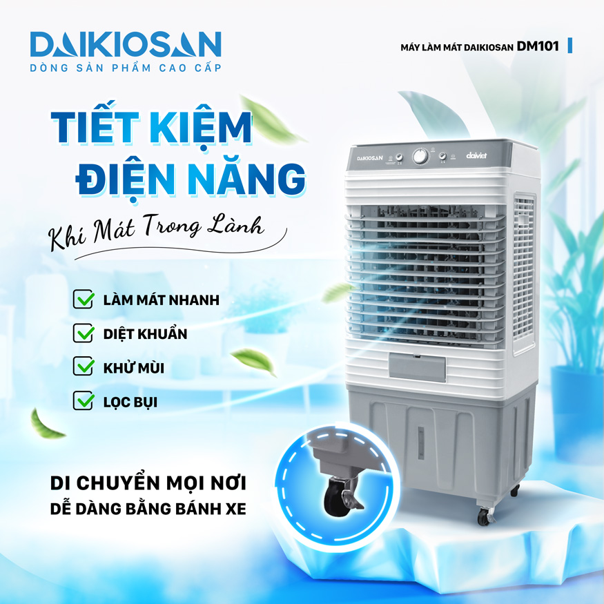 Quạt Điều Hòa cao cấp Daikiosan DM101 | 3 tốc độ làm mát | Công nghệ AG+ | Dung tích 40L