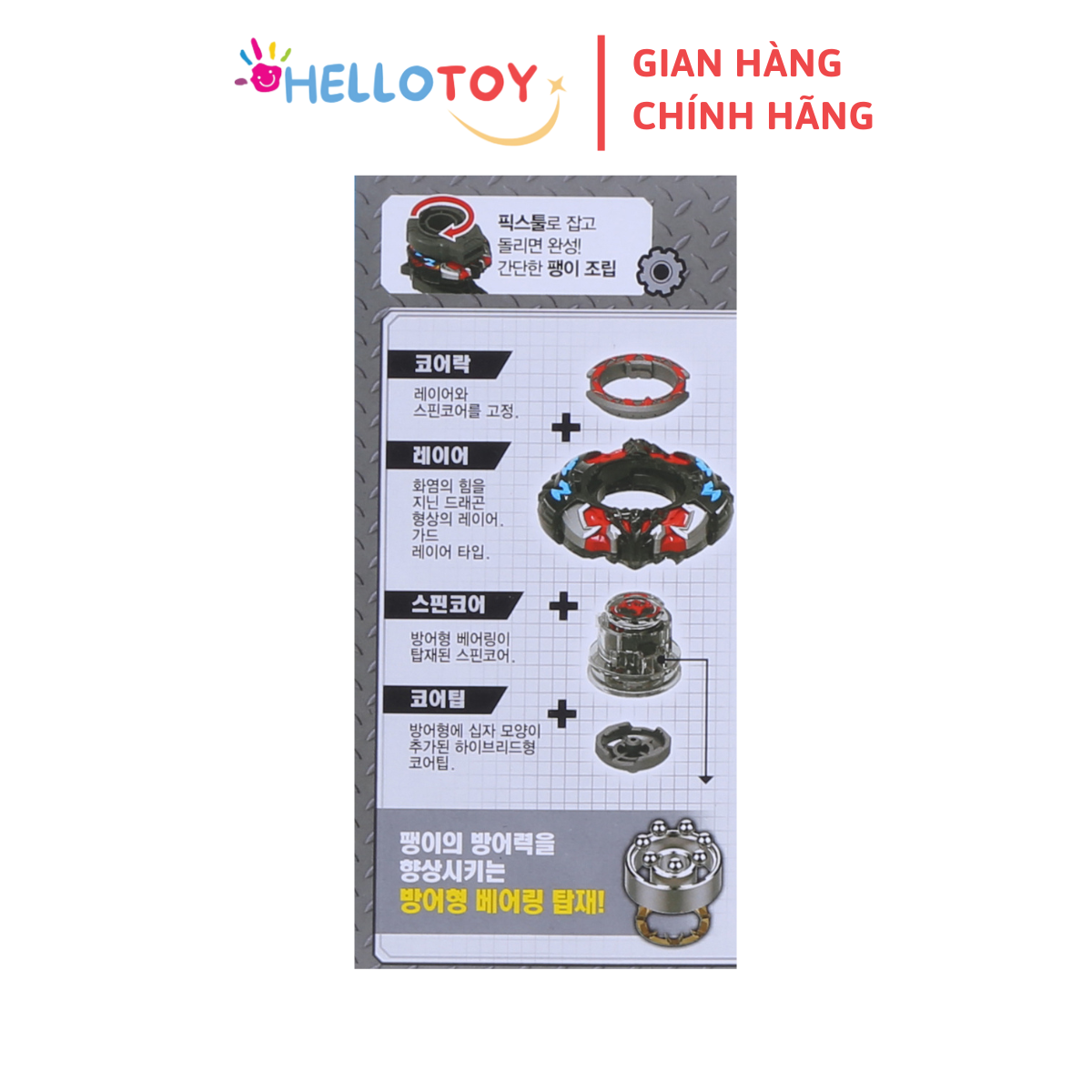 1.Tên sản phẩm: Đồ chơi Trẻ em 2.Tên hàng hóa: [CHARGING TOP SPINNER] CON QUAY RANDOM GEAR GRIZZLIA 3.Mã hàng hóa: TSP-A-018 4.Thành phần: Nhựa ABS 5.Thông số kỹ thuật: 83*40*62 (mm), 47 g, không