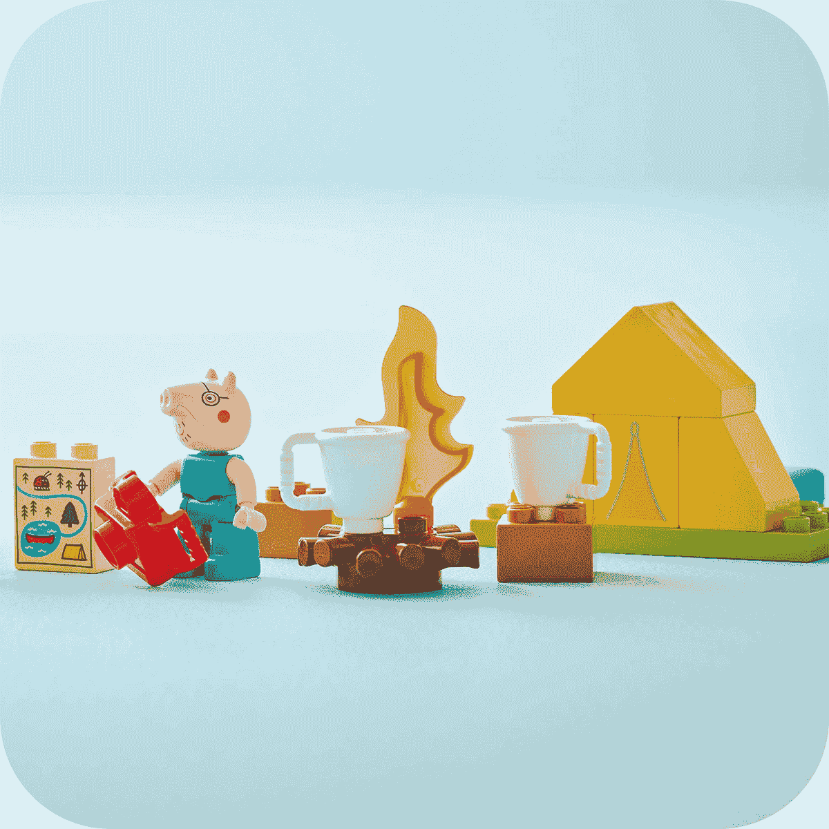 Hôm nay là một ngày tuyệt vời để đi cắm trại! Hãy giúp Daddy Pig và Peppa dựng lều, trải túi ngủ, khám phá thiên nhiên xung quanh và tìm những chú bọ rùa. Cùng họ chèo thuyền khám phá dòng sông. May mắn thay, họ có một tấm bản đồ để tìm đường trở về khu cắm trại. Quây quần bên đống lửa, thưởng thức một ly sô-cô-la nóng và cho họ xem những bức ảnh bạn đã chụp trong chuyến phiêu lưu này.