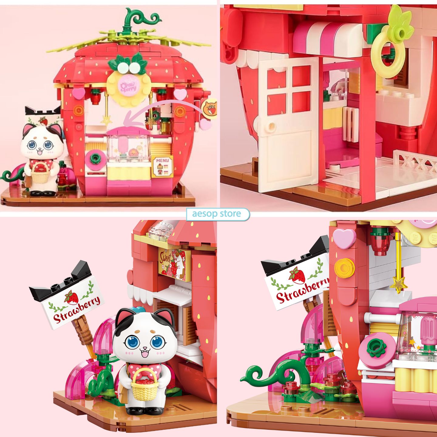 Đồ chơi lắp ráp Mô hình Cửa hàng Dâu tây tạo thành phẩm 14 8 15 (cm) với nhiều chi tiết nhỏ xinh xắn