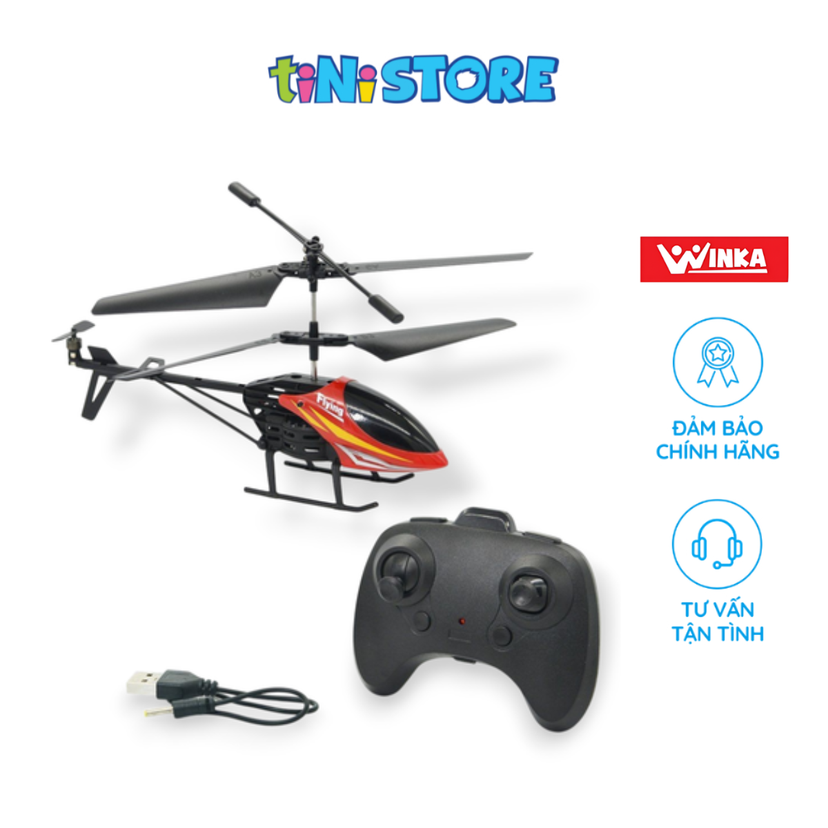 THÔNG TIN SẢN PHẨM 1. Tên sản phẩm: Trực thăng trinh sát điều khiển từ xa Winka 2. Thương hiệu: Winka 3. Mã sản phẩm: DK81309 4. Thông số kỹ thuật: Có sử dụng pin. Pin sạc USB (đi kèm) cắm vào thân máy bay và điều khiển dùng 2 viên pin 1.5V AA (không đi kèm) 5. Kích thước bao bì: 37.8 cm x 15 cm x 5.7 cm 6. Trọng lượng: 130g 7. Độ tuổi: 8 tuổi trở lên 8. Chất liệu: Nhựa cao cấp ABS, an toàn cho trẻ 9. Nơi sản xuất: Trung Quốc 10. Xuất xứ: Việt Nam ĐẶC ĐIỂM SẢN PHẨM Trực thăng trinh sát điều khiển từ xa Winka được thiết kế giống với mô hình máy bay trực thăng huấn luyện trong quân sự, với các chức năng: bay thẳng lên - hạ xuống và bay ngang theo điều khiển từ xa tần số sóng 2.4GHZ siêu mạnh, các bé sẽ nhanh chóng nhập vai trở thành một phi công điều khiển chiếc máy bay chiến đấu bảo vệ vùng trời của tổ quốc. Quá trình chơi với các bạn giúp bé học được nhiều điều bổ ích, đồng thời kích thích phát triển toàn diện các kỹ năng xử lý tình huống. Việc điều khiển máy bay giúp bé dần hình thành kỹ năng quan sát cho bé nhờ việc bé quan sát chuyển động của đồ chơi hình dạng và màu sắc của chúng. Sản phẩm không những mang đến cho bé những giây phút vui chơi thật thoải mái và vui vẻ bên bạn bè và gia đình mà còn giúp bé phát triển và hoàn thiện các kỹ năng và giác quan. TIÊU CHUẨN AN TOÀN Châu Âu: EN 71 Mỹ: ASTM Quy chuẩn quốc gia về đồ chơi trẻ em QCVN 3:2019/BKHCN. Giấy chứng nhận hợp quy số :VIC/23.HQ/9.01.0820, cấp ngày 29/08/2024. Lưu ý: Kích thước có thể chênh lệch từ 1-3cm do các phương pháp đo khác nhau           Hệ thống điều khiển radio (R/C) ổn định hoạt động tốt ở khoảng dưới 100m.