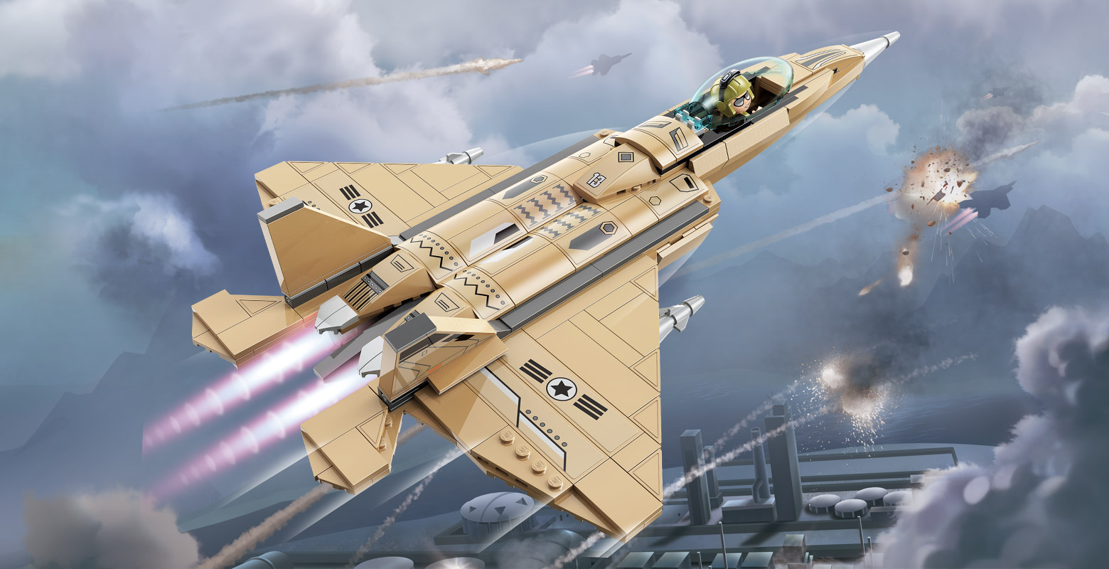 - Bộ xếp hình gồm 376 chi tiết là mô hình máy bay tiêm kích trong các cuộc chiến đấu kèm các chú lính minifigure rất đẹp mắt và chắc chắn.