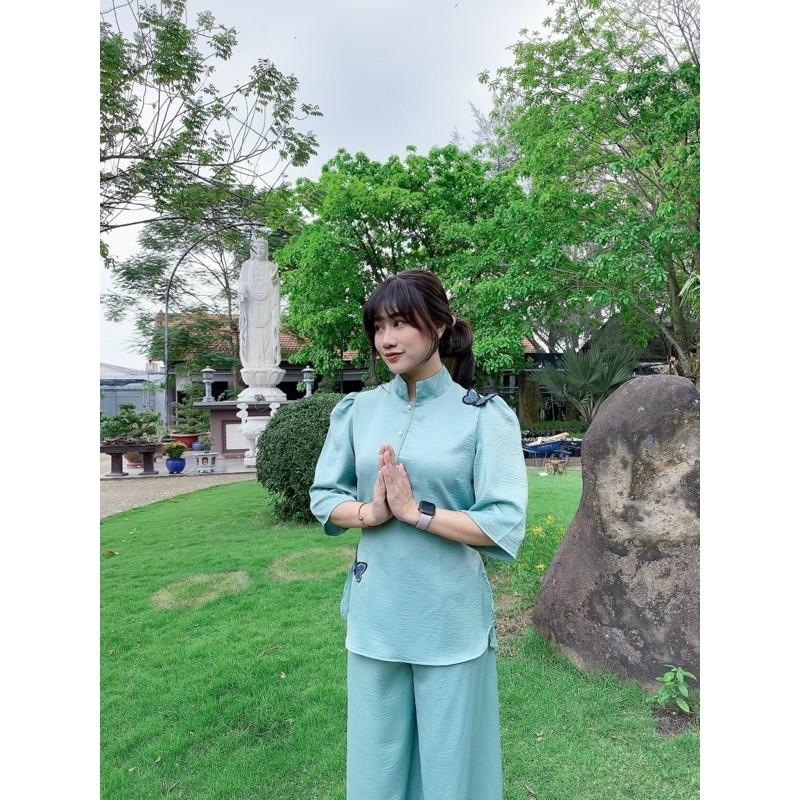 ✨Đồ lam đi chùa cao cấp AL031 kết cườm thêu bướm cực đẹp
