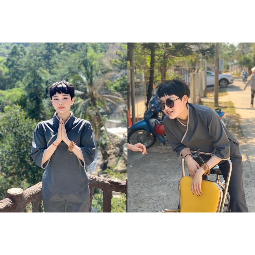 quần áo Phật tử cổ tàu cài chéo - đồ lam đi chùa Sen Hồng - set Phật tử nữ đẹp 0898553583