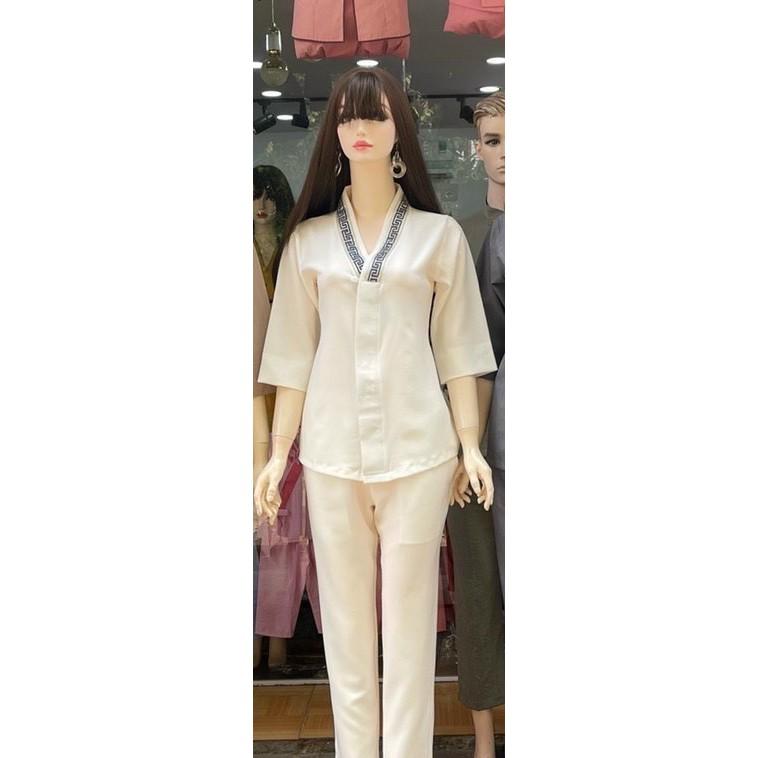 Quần áo đi chùa - Bộ thêu hoa 3D màu trắng - Tâm An Store