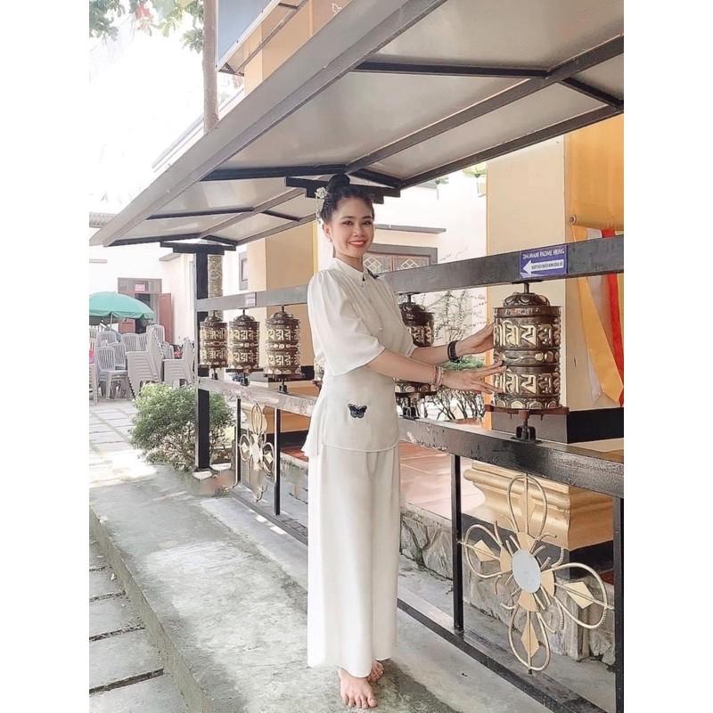 Quần áo phật tử đồ lam đi chùa mẫu xéo nơ An Yên