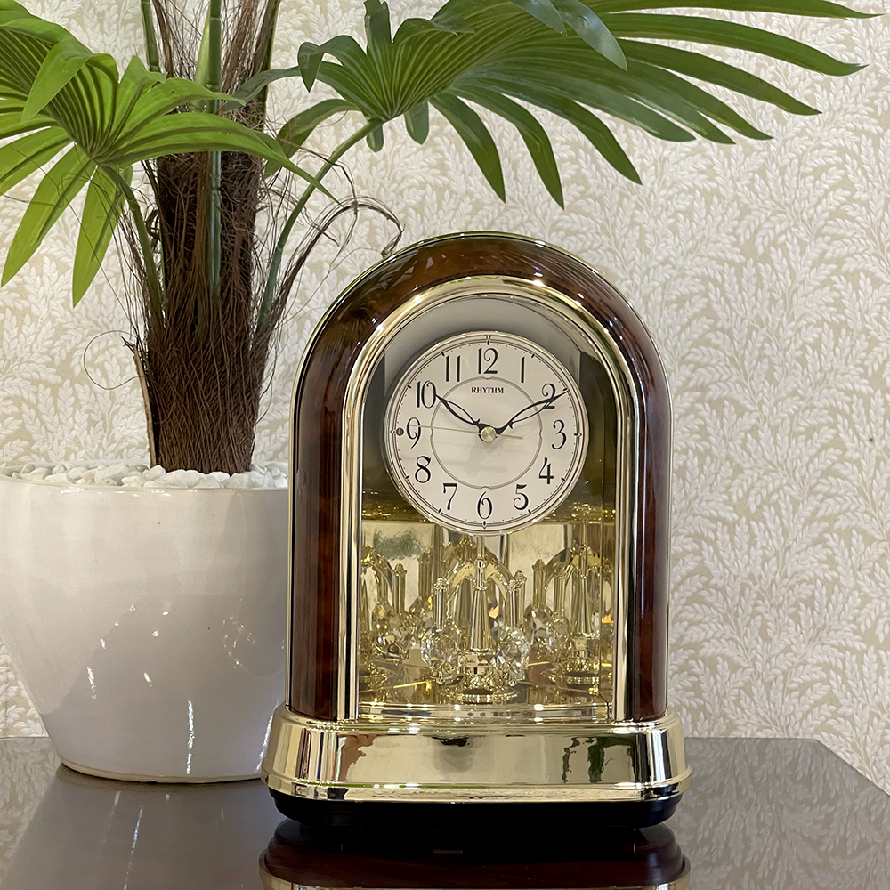 Đồng hồ để bàn Nhật Bản Rhythm 4RP796WS18, dùng pin (AAx2), vỏ nhựa cao cấp mạ vàng kết hợp mica trong suốt nhìn xuyên thấu, Kích thước 14.0 x 22.8 x 8.3cm, trọng lượng 390g. Quả