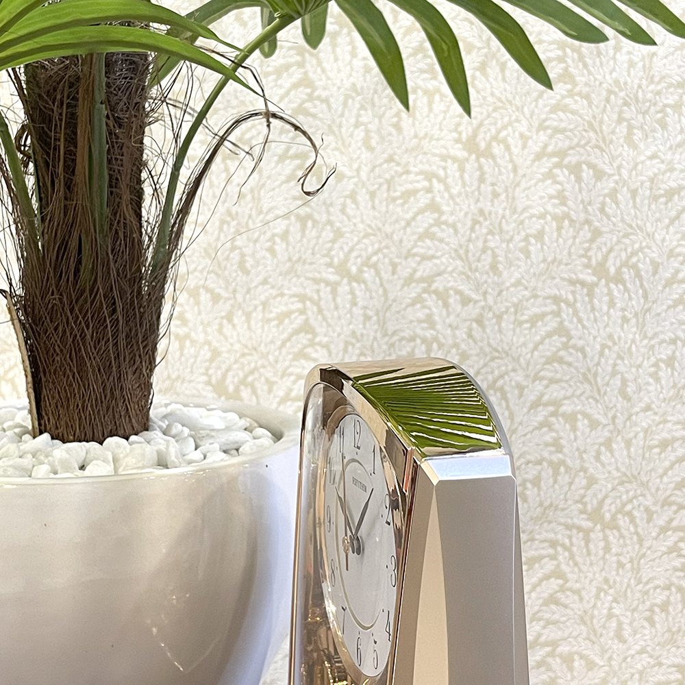 Mua tại TiktokĐồng hồ để bàn Nhật Bản Rhythm 4RP772WR13, dùng pin 2 PIN tiểu (AAx2), vỏ nhựa mạ vàng hồng. Kích thước 17.8 x 21.3 x 7.6cm, trọng lượng 750g. quả lắc chậm , lắc nhịp nhàng êm ái. Máy chạy cự êm, chính xác, bền bỉ.