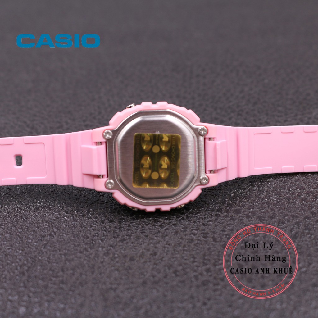 Mua tại TiktokĐồng hồ điện tử nữ Casio LA-20WH-4A1 có thiết kế nhỏ nhắn dễ thương dành cho các bạn nữ và cho trẻ em . Đồng hồ có mặt số điện tử hiện thị đa chức năng hữu dụng , vỏ và dây đồng hồ có màu hồng làm cho chiếc đồng hồ thêm trẻ trung và xinh xắn. Với giá thành rẻ và thiết kế đẹp sử dụng được lâu bền nên mẫu đang rất được yêu thích hiện nay Thông số kỹ thuật: Dây và vỏ: Nhựa Chống nước cơ bản 30 mét