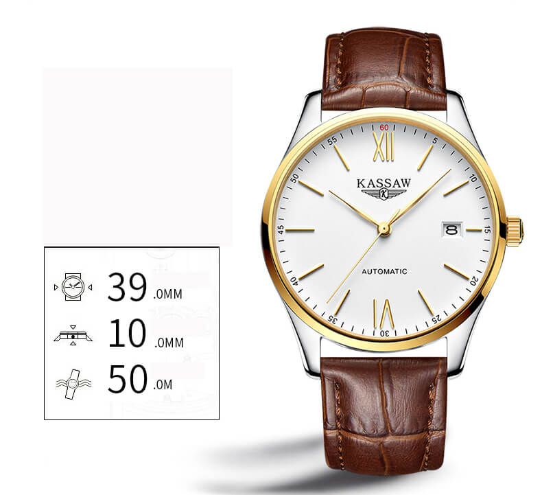 Mua tại TiktokĐồng hồ nam chính hãng Kassaw Thụy Sỹ Thiết kế sang trọng, đẳng cấp cho quý ông Thời gian trữ cót lâu lên đến 40h Chống nước 5ATM, Kính sapphire Toàn bộ máy được làm từ thép không gỉ 316L Đồng hồ cơ Automatic, Sử dụng bộ máy Seiko NH35A Chính hãng