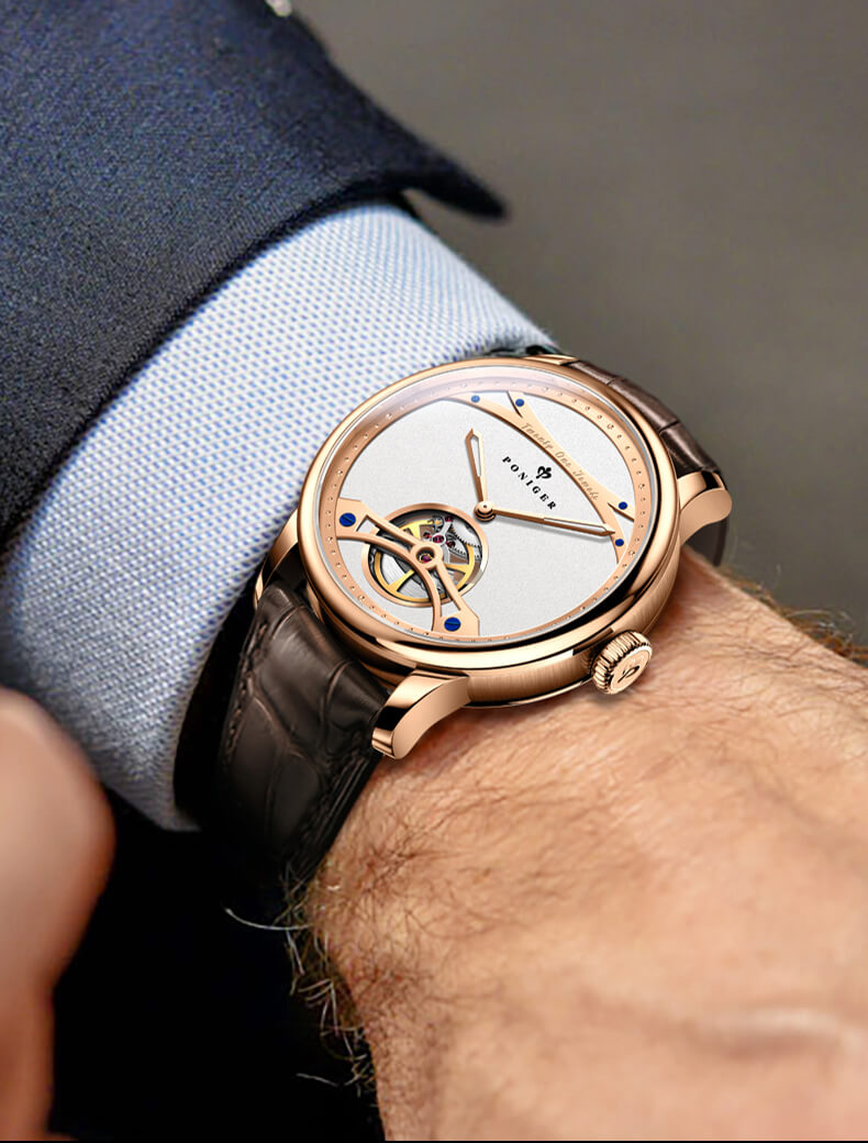 ✨Đồng hồ nam Poniger P819-1 Chính hãng ,Kính sapphire nguyên khối ,chống xước,chống nước 50m,mặt trắng vỏ vàng hồngdây da nâu ( đen) xịn,vỏ máy thép không gỉ 316L,Đồng hồ cơ (Automatic) bảo hành 24 tháng, hàng mới 100%,thiết kế trẻ trung và sang trọng