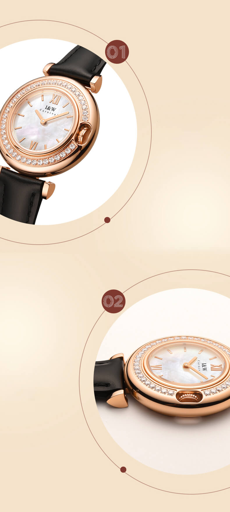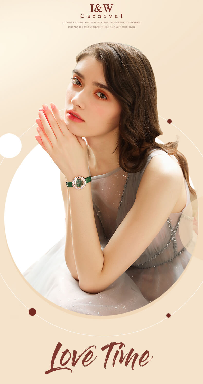 Thương hiệu I&W Carnival Quốc gia đăng ký thương hiệu Thụy Sỹ Mã sản phẩm 573L1 Giới tính Nữ Bảo hành Chính hãng 24 tháng Kiểu máy Japan Miyota Automatic Mov't (Máy cơ tự động