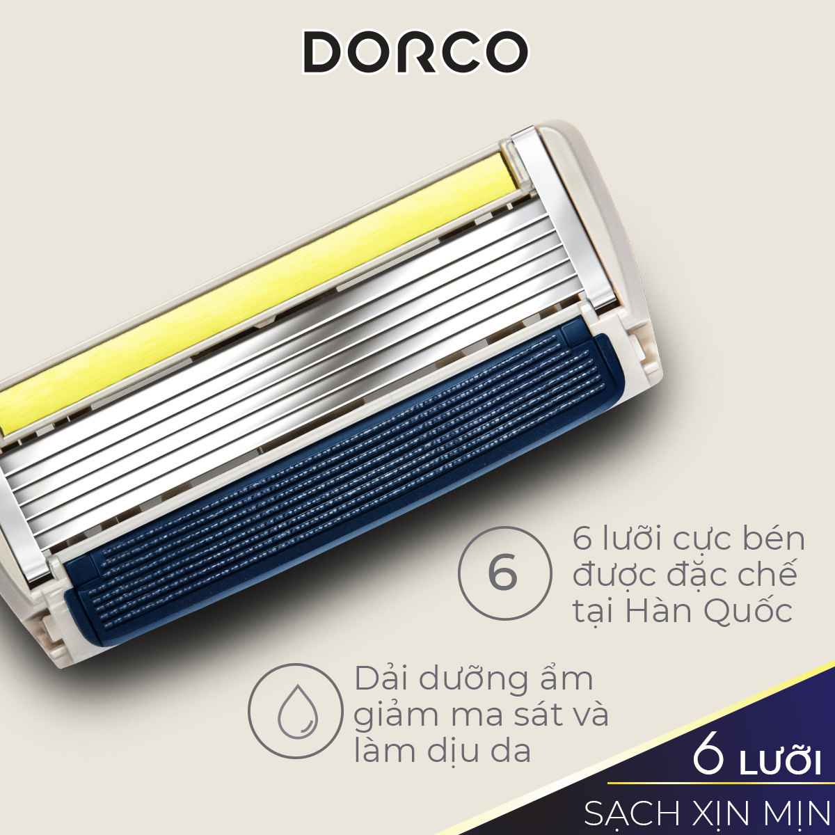 - Vỉ 04 Đầu Cạo Râu 6 Lưỡi Dorco Pace 6 Plus SXA 5040-4B (6 Lưỡi + Đầu Cắt Tóc Mai) có đầu dao cạo thon gọn, thiết kế gồm 6 lưỡi và có khả