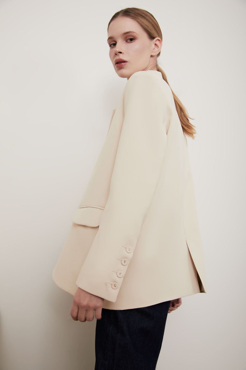 1. Thông tin sản phẩm Áo blazer vai rộng, không cổ, cài 2 khuy, tay lỡ dài, có lơ vê. Mỗi lớp vải mềm mại của Vincent Set là sự kết hợp hoàn hảo giữa