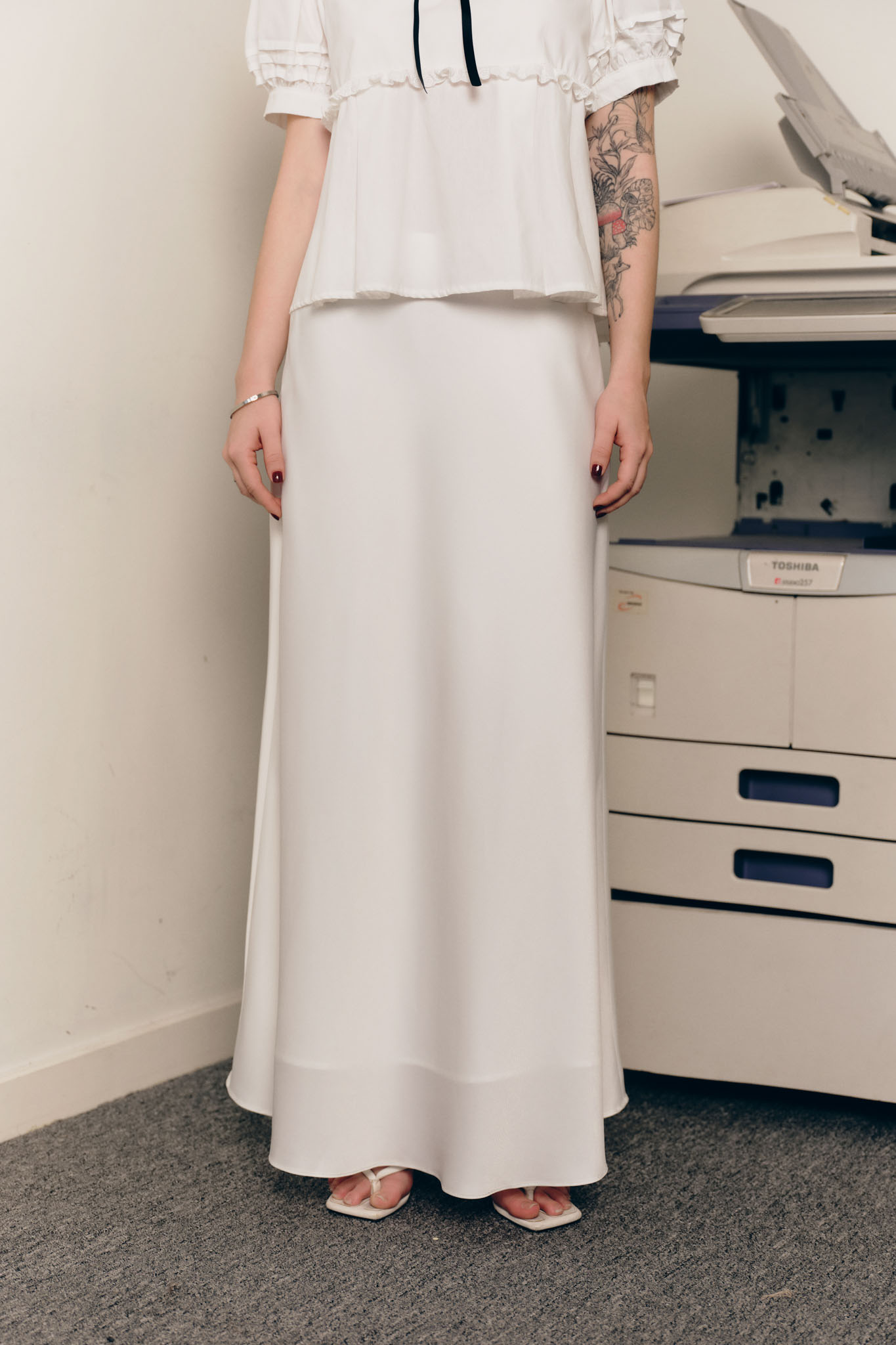 - Màu sắc : Trắng    - Chất liệu : Lụa pha   - Đặc tính : Thoáng mát, nhẹ, ít nhăn   - Lưu ý giặt ủi :    Giặt riêng, giặt tay, giặt máy Ủi ở nhiệt độ thấp - Size : S / M / L   - Thông số sản phẩm :   Dài váy / Ngang eo   S: 82 / 68   M: 84 / 72   L: 84 / 76   LƯU Ý:    + Bảng size chart chỉ mang tính chất tham khảo, tùy thuộc vào số đo cơ thể Dottie sẵn sàng tư vấn cho bạn.   + Nếu cần Dottie hỗ trợ về sản phẩm, khi mở sản phẩm bạn vui lòng quay lại video quá trình mở sản phẩm giúp Dottie nhen.   + Giặt riêng với đồ tối màu    + Khuyến khích giặt tay đối với những sản phẩm trắng    + Hạn chế sấy ở nhiệt độ cao    QUY ĐỊNH ĐỔI TRẢ