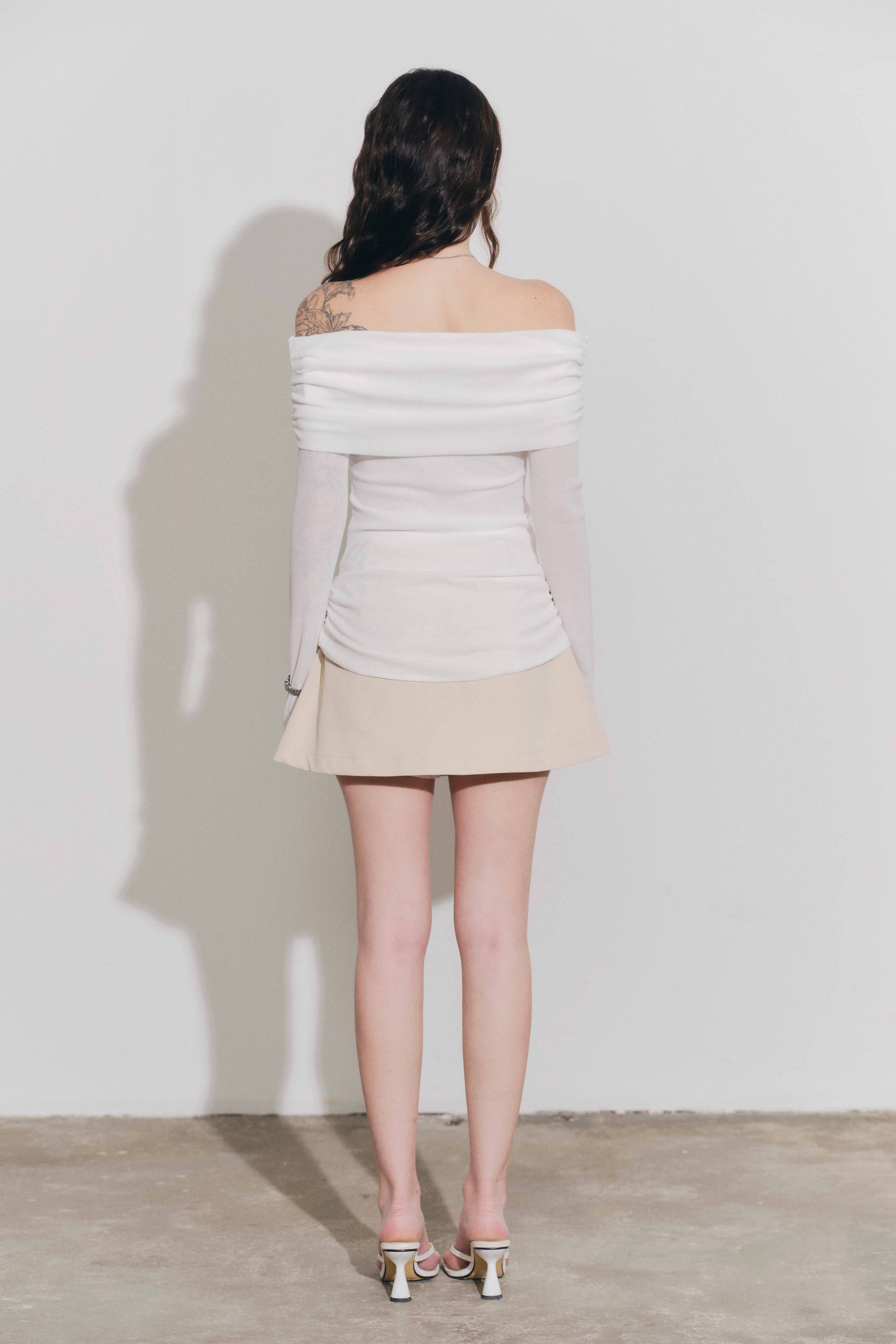 ✨DOTTIE - Váy ngắn xếp ly phối vải - Beige - S0294