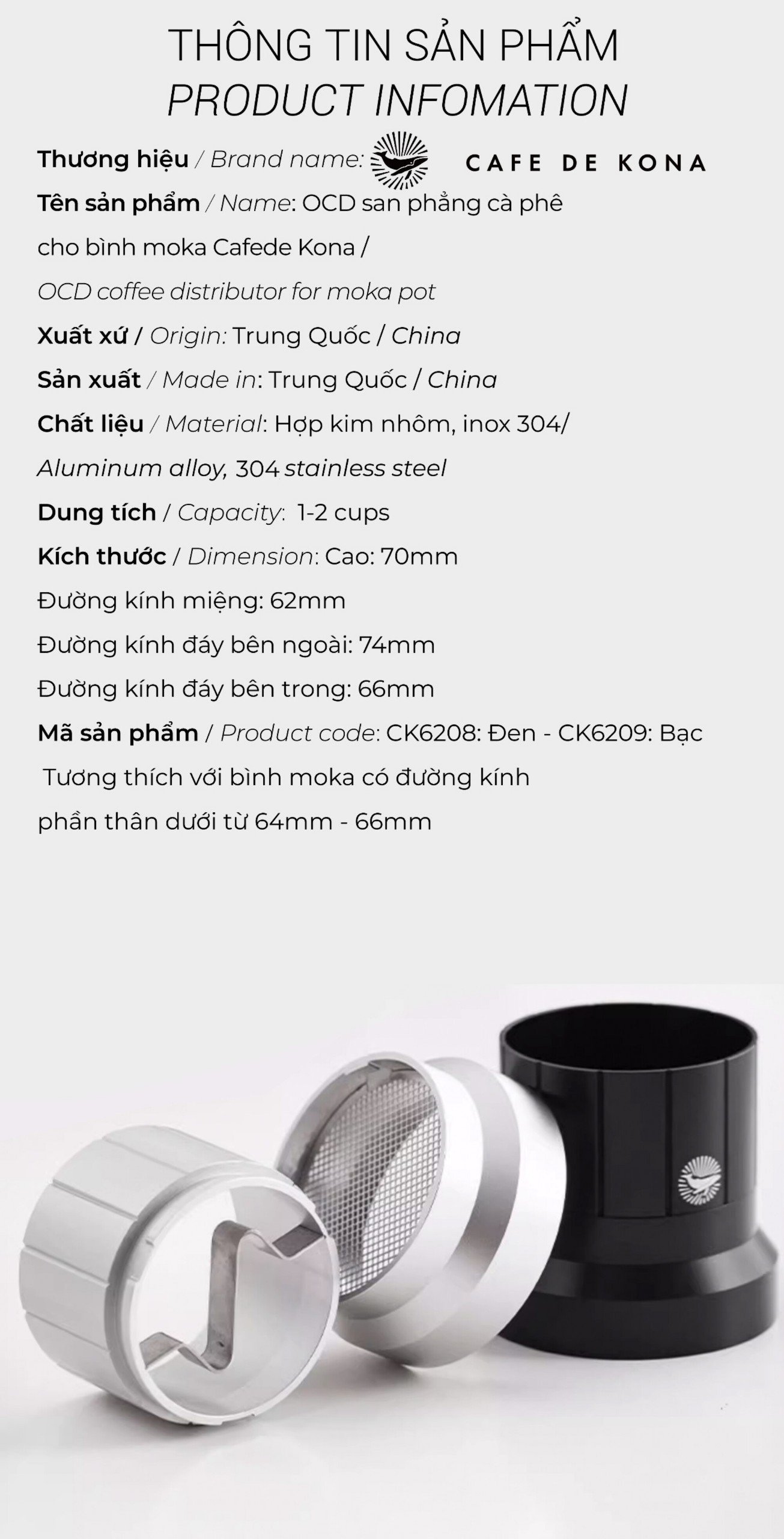 OCD SAN PHẲNG CÀ PHÊ CHO BÌNH MOKA 2 CUP CAFEDE KONA