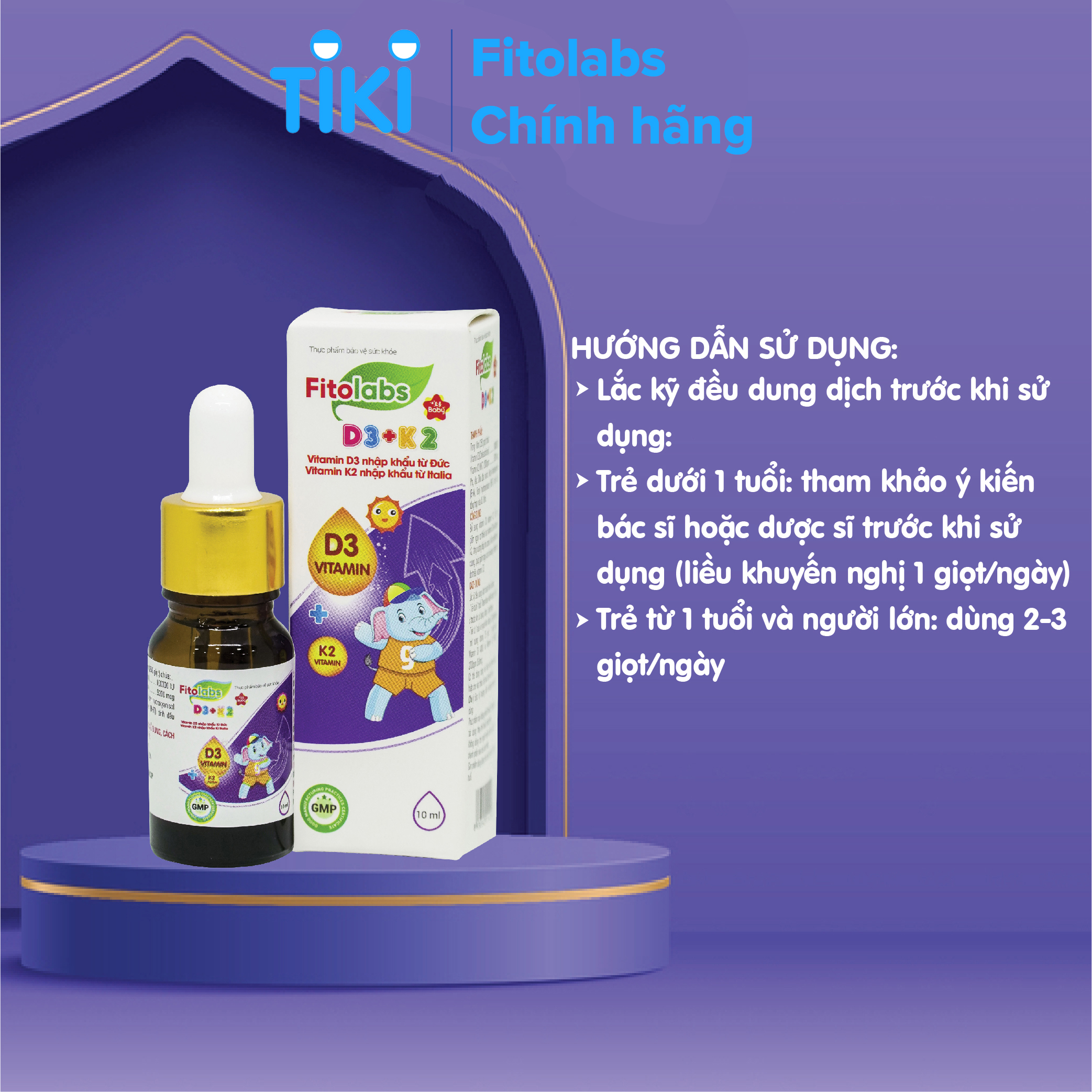 Fitolabs D3 - K2 dạng nhỏ giọt, bổ sung vitamin D3 K2 giúp bé tăng chiều cao, xương răng chắc khỏe. Fitolabs D3 - K2 bổ sung bộ đôi vitamin D3 và vitamin K2 giúp