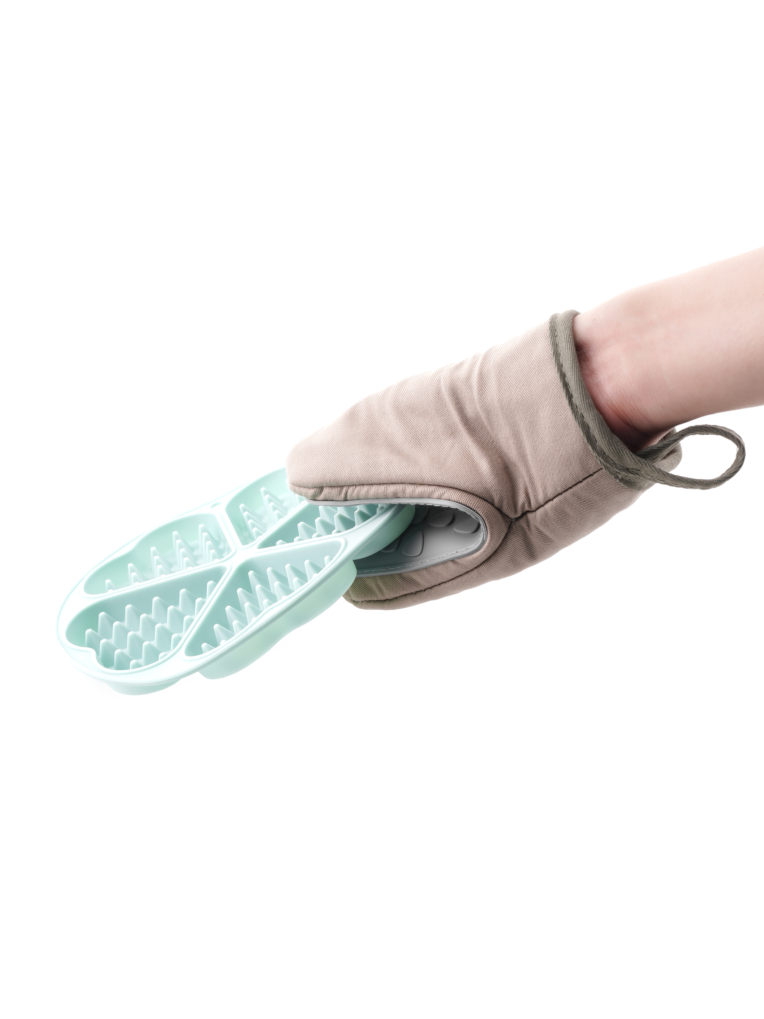 Găng tay silicone nhấc nồi kích thước : 195x125x20 màu sắc : nâu + xám chất liệu ; Silicone , Textile