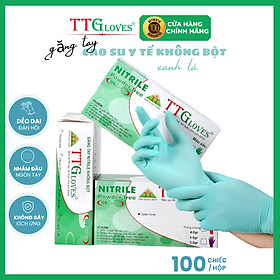 Găng Tay Y Tế, Bao Tay Cao Su Y Tế Không Bột Nitrile TTGLOVES Siêu Dai Màu Xanh Lá Độc Đáo 3.5g 100 Chiếc Size M THÔNG TIN SẢN PHẨM + Tên sản phẩm: