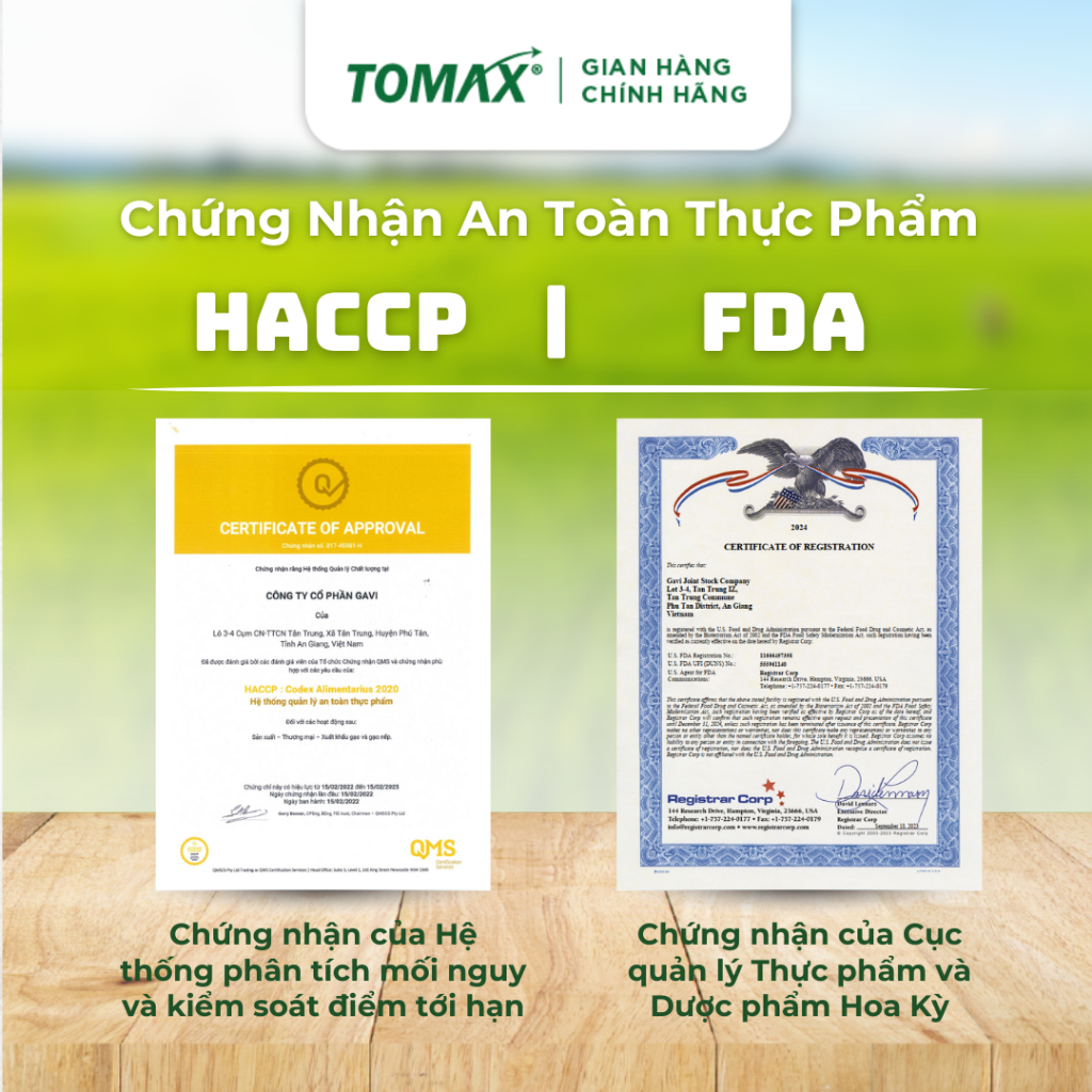 Gạo hữu cơ Đài Thơm Tomax 100% không có chất bảo quản, không có chất chống mọt, chống nấm, chất tẩy trắng an toàn tuyệt đối cho người sử dụng. Giá trị dinh dưỡng trong mỗi hạt gạo cao vì được phát triển tự nhiên như vitamin B1, B3, B6, sắt, kẽm, Omega 3… tăng cường sức khỏe cho cả gia đình mỗi ngày.