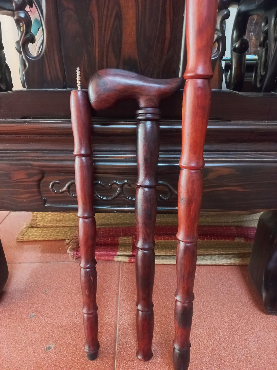 ✨Gậy batong hỗ trợ đi lại dành cho người già bằng gỗ trắc đỏ đen kt 90×13×3.5cm