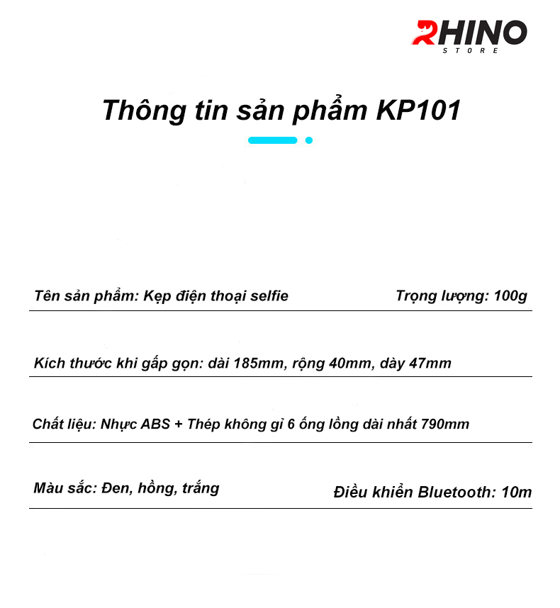 Gậy chụp ảnh cầm tay, giá đỡ, kệ đỡ điện thoại 3 chân Rhino KP101 với 6 thanh inox siêu dài hỗ trợ người dùng hết mình khi chụp ảnh selfie, chụp ảnh gia đình