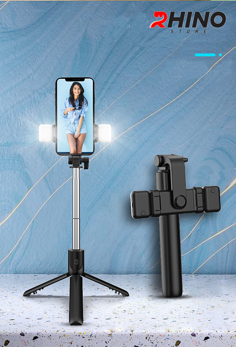 ✨Gậy chụp ảnh cầm tay, kệ đỡ điện thoại 3 chân Rhino KP101 kèm bóng đèn LED với 6 thanh inox dài - Hàng chính hãng
