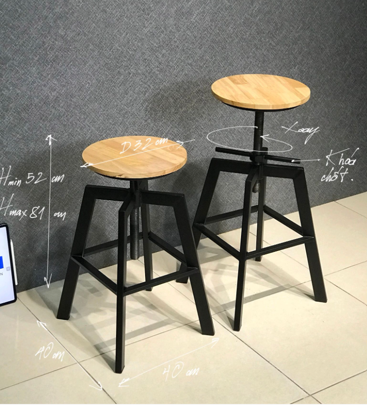 Mua tại TiktokQuý khách hàng vui lòng chọn sản phẩm nhà bán JUNO SOFA để nhận được sản phẩm đúng với chất lượng Ghế bar Iron bar stool Chất liệu : Chân sắt sơn tích điện, mặt gỗ cao su tự nhiên . Màu sắc: đen . Kích thước : Chiều cao mặt ngồi min ~55cm - max 81cm. Ứng dụng : ghế ăn, ghế cafe, ghế họp, ghế văn phòng, ghế nhà hàng , ghế quầy bar Bảo hành : 12 tháng