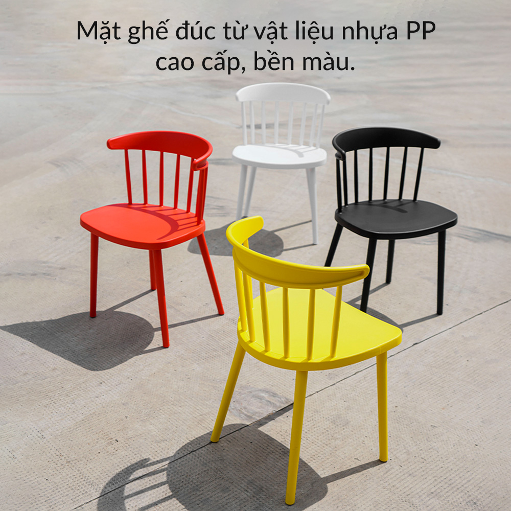 Thông số sản phẩmMàu sắc: đen, đỏ, trắng, vàngKích thước: 52x47x75cmChất liệu: Nhựa PPĐặc điểm sản phẩmGhế được làm từ nhựa đúc cao cấp, hạn chế nứt vỡ hay ẩm mốc, chịu lực tốt, chống chầy xước và ...