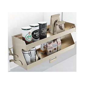 Giá đa năng để giao thớt, chai lọ, gia vị Chất liệu: Inox 304 dạng nan tròn Phiên bản bắt cánh ngăn kéo và mở cánh Ray âm giảm chấn Angas Độ rộng cánh: 300mm